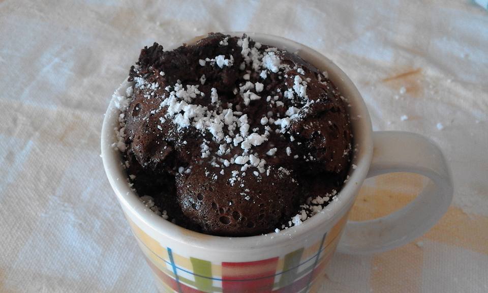 Esmagar uma banana madura com um ovo e misturar as 2 ou 3 colheres de cacau.