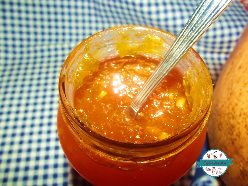 6 – Deitar o doce em frascos ainda quente. Lá na receita antiga fala como esterilizar frascos, leia aqui: Compota de Abóbora e Laranja aromatizada com Alecrim e Canela!!!