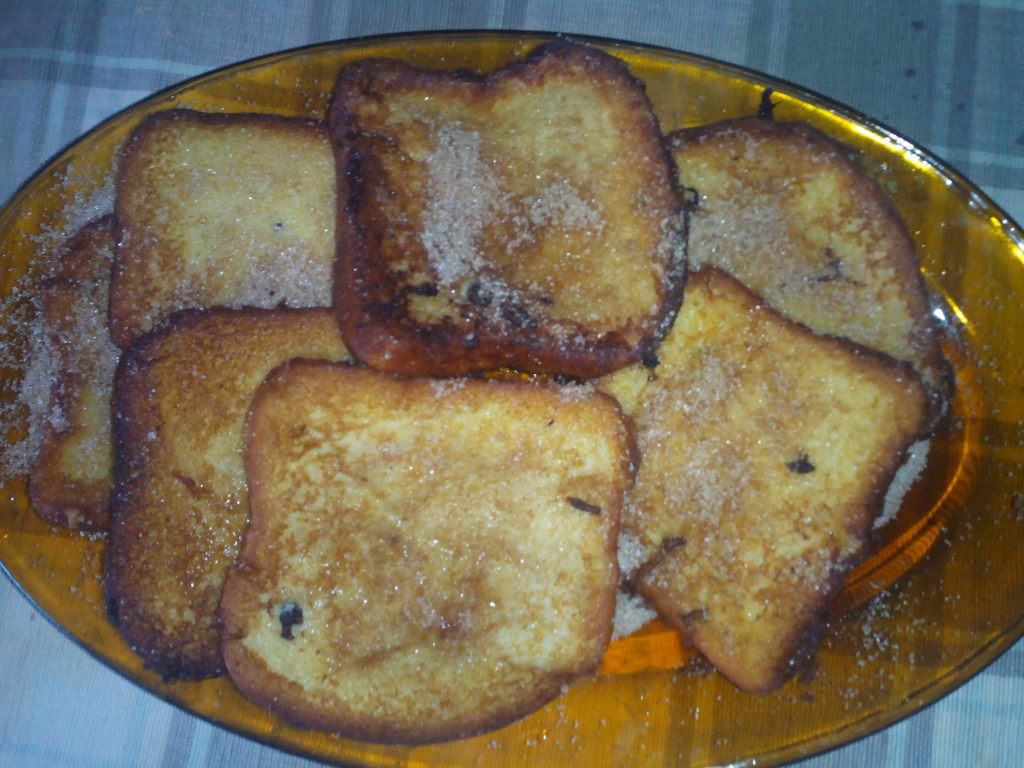 Aqueça uma frigideira com óleo bem quente, passe as fatia por leite (não encharque muito pois corre o risco do pão se desfazer), depois passe nos ovos e frite até estarem bem douradas.