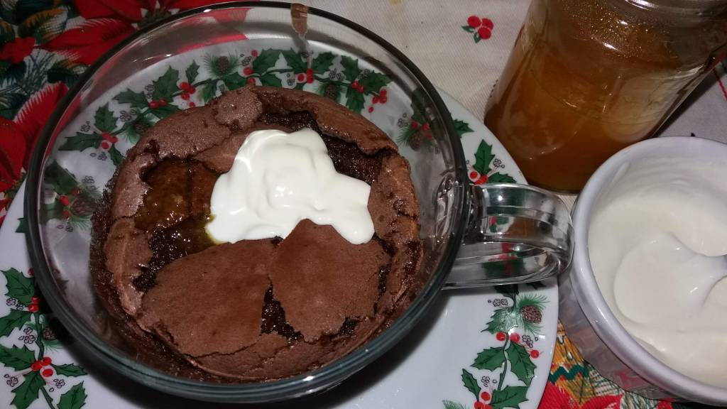 Asse por 25 minutos, e em seguida, retire cuidadosamente as xícaras da assadeira e deixe-as descansar por pelo menos 15 minutos antes de servir.