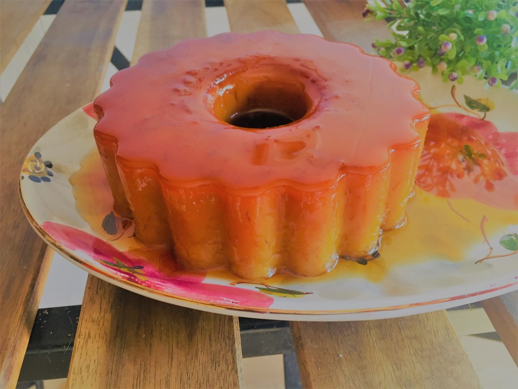 5 – Leve ao forno pré-aquecido a 180 graus, em banho-maria (use um tabuleiro para colocar a forma do pudim e despeje a água a ferver sobre o tabuleiro). Deixe no forno durante uns 30 a 40 minutos.