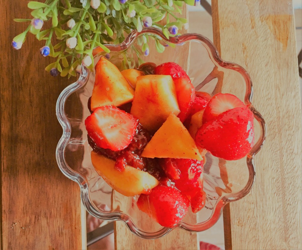 É delicioso! Eu gosto da calda ainda quente na fruta e é excelente para estas noites que já são bem frias!