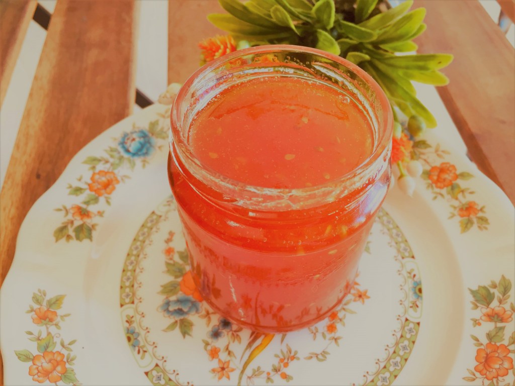 Em um tacho colocar os tomates partidos aos pedacinhos, juntamente com os restantes ingredientes e deixar ferver até formar ponto de estrada.