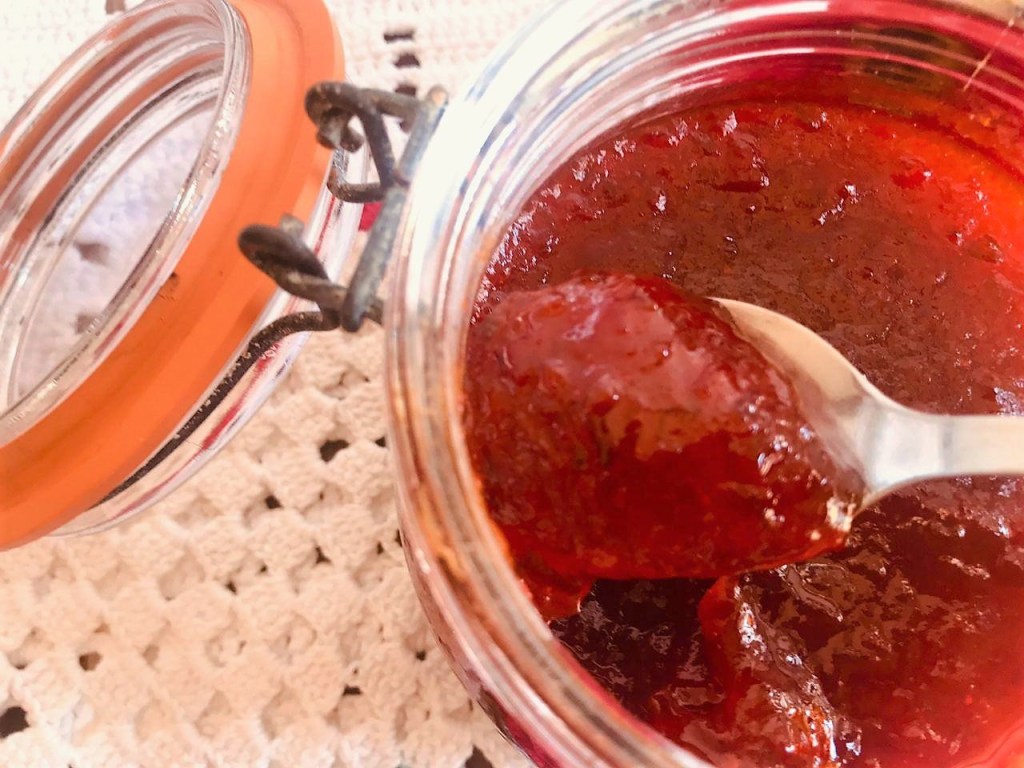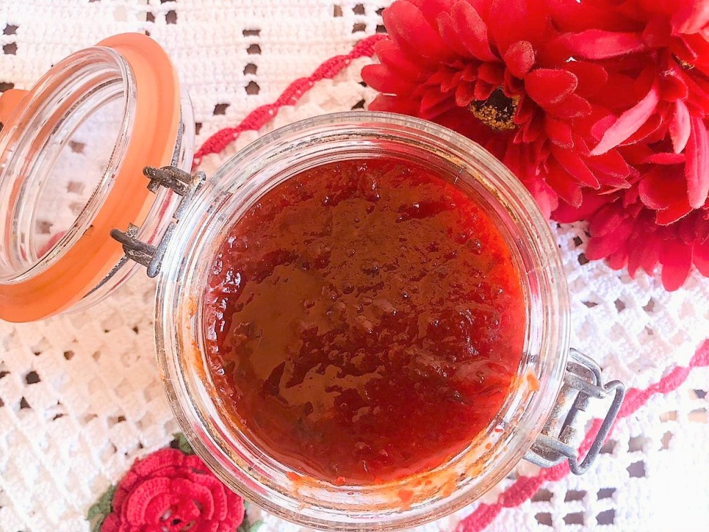 Já aqui fizemos a geleia de pimenta, esta é parecida mas não é picante, Tal como a Geleia de pimenta esta dá para vários usos, aquele que eu mais gosto é temperar carne…mas são gostos…fica excelente para um lanche da tarde junto de um bom queijo e um chá como complemento!