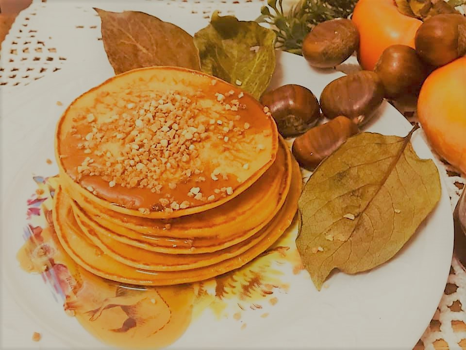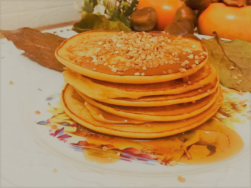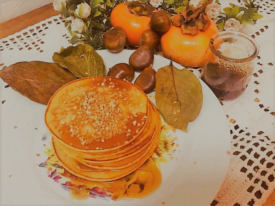 Esta é uma excelente versão para um lanche da tarde! A abóbora é um fruto com poucas calorias e muita rico em fibra e como estamos no tempo da abóbora aqui vai esta receita destas panquecas, o toping fica ao vosso critério, eu prefiro simples com mel e nozes.