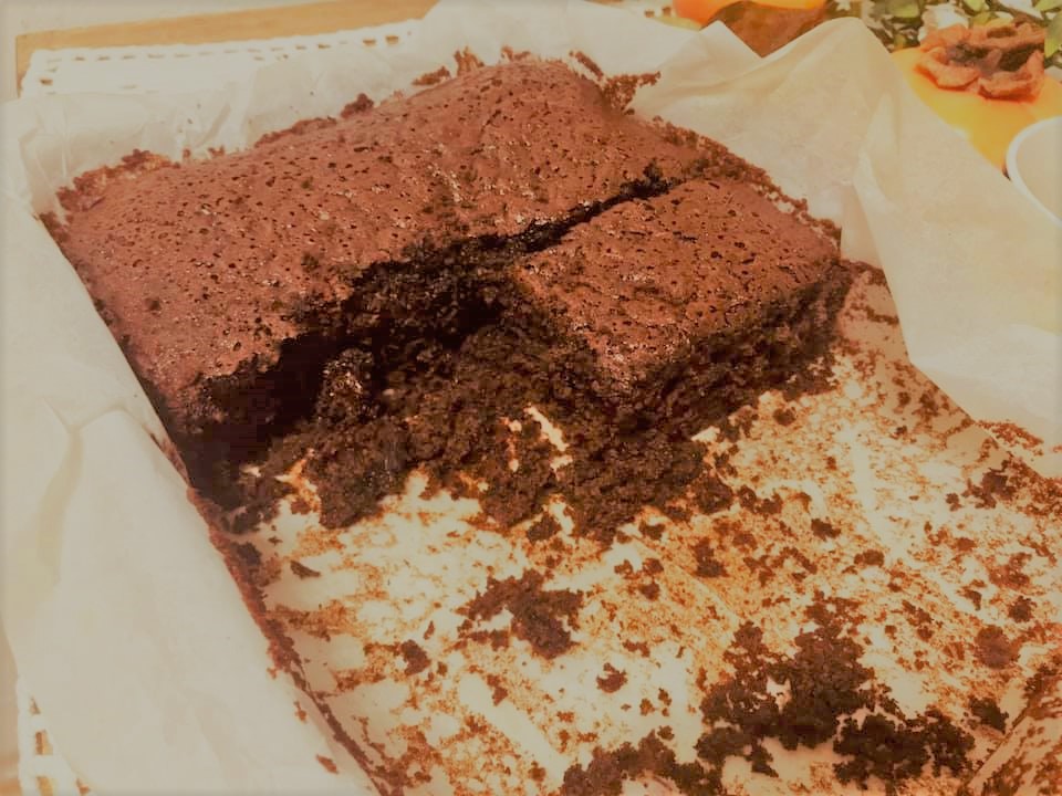 Levar ao forno durante cerca de 50 minutos. Eu usei uma forma quadrada e parti o bolo aos quadrados.