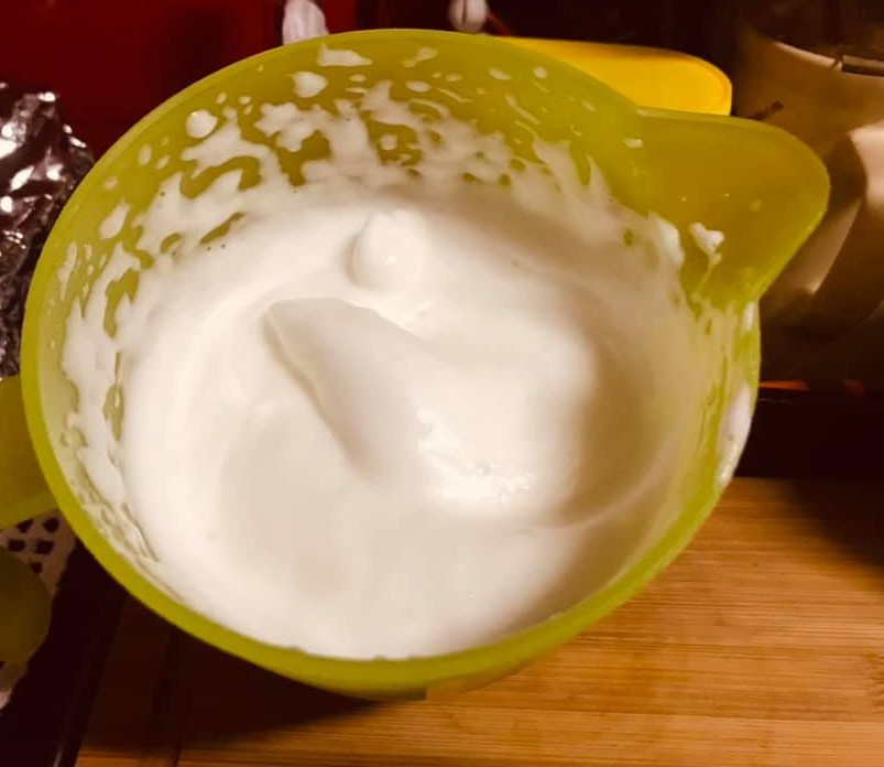 É verdade, eu sei que parece impossível, mas a aquafava batida com a batedeira fica como as claras de ovo batidas em castelo.