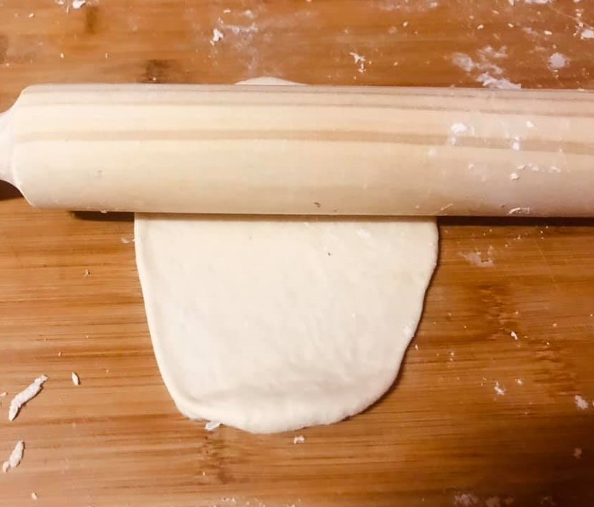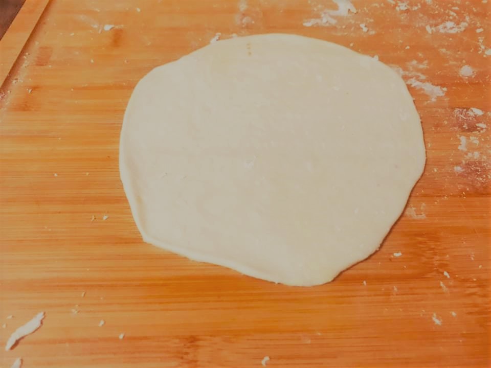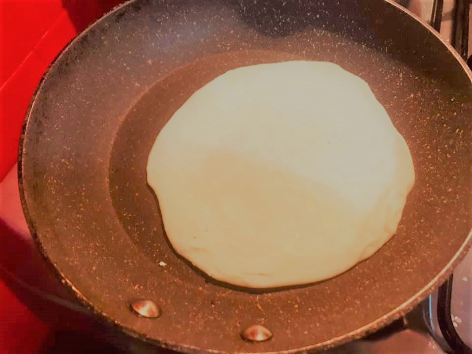 – Este pão pode ser feito no forno naqueles discos de pedra para fazer as pizzas ou em assadeira caso não tenha, eu pessoalmente faço na frigideira;