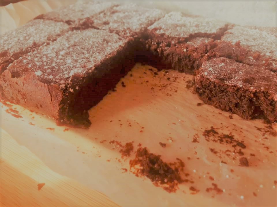 Leve ao forno a 180 graus e deixe cozer durante cerca de uns 30 minutos, mas não deixe cozer demais, o meio deverá ficar humido e à volta cozido. Vá deitando o olho! Polvilhe com açucar em pó por cima.