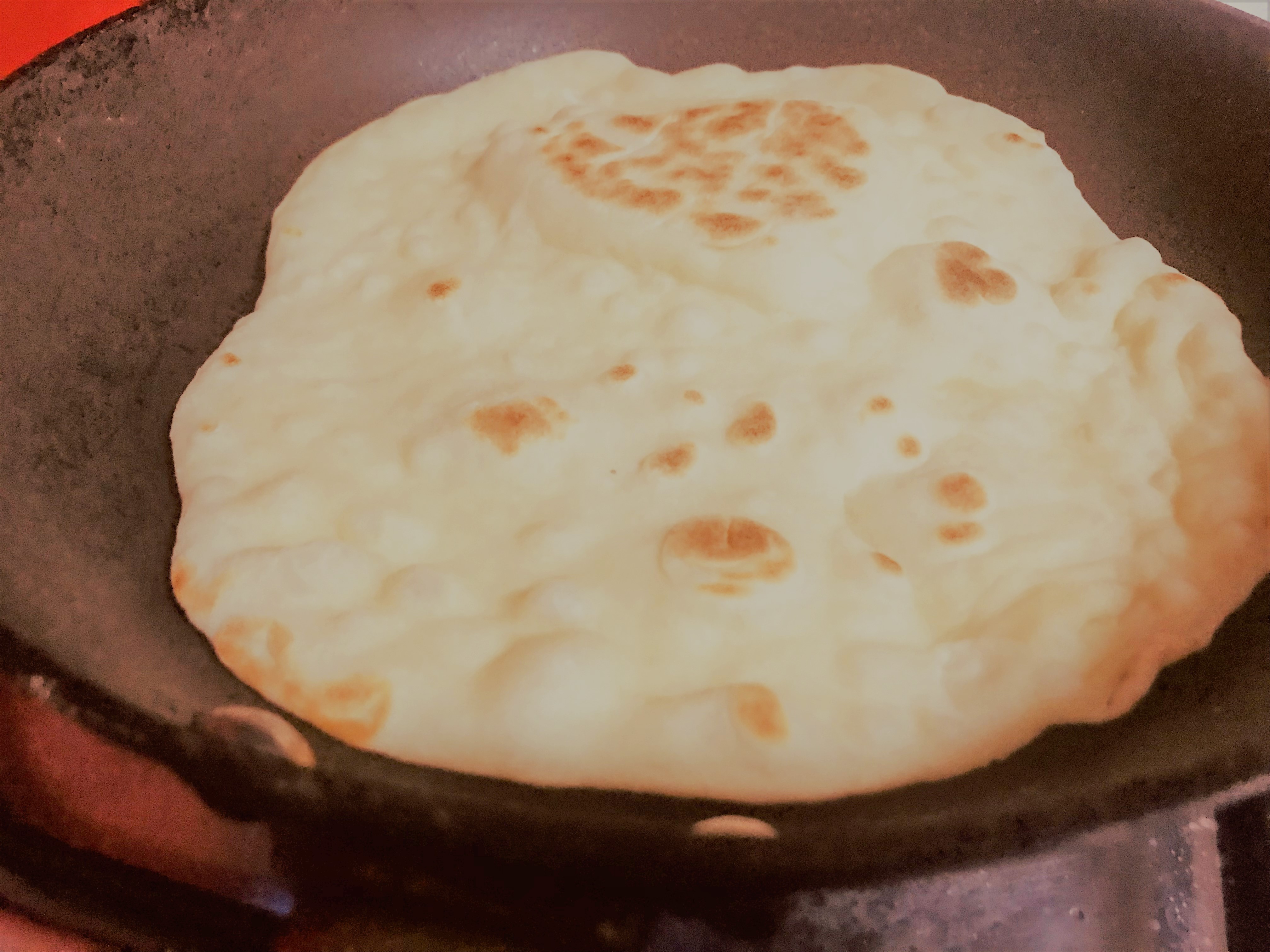 Naan é um pão de origem Indiana que serve de acompanhamento qualquer refeição. Eu gosto bem quentinho com manteiga de alho e ervas.