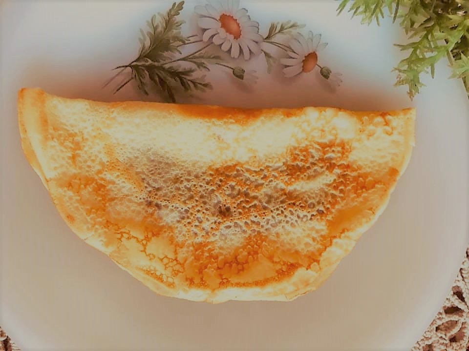 Misturar todos os ingredientes e com a ajuda da batedeira, bater durante dois a três minutos. Levar a aquecer uma frigideira anti-aderente untada com manteiga e com a ajuda de uma concha verter a massa só a preencher o fundo e deixar cozer. Virar e repetir o processo até a massa terminar.