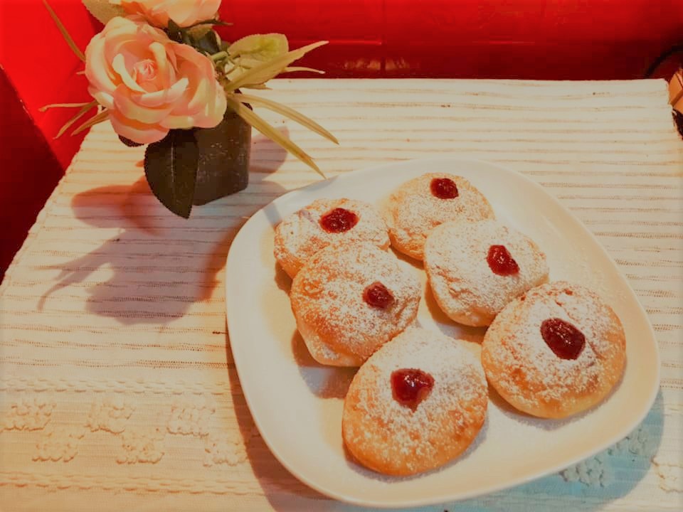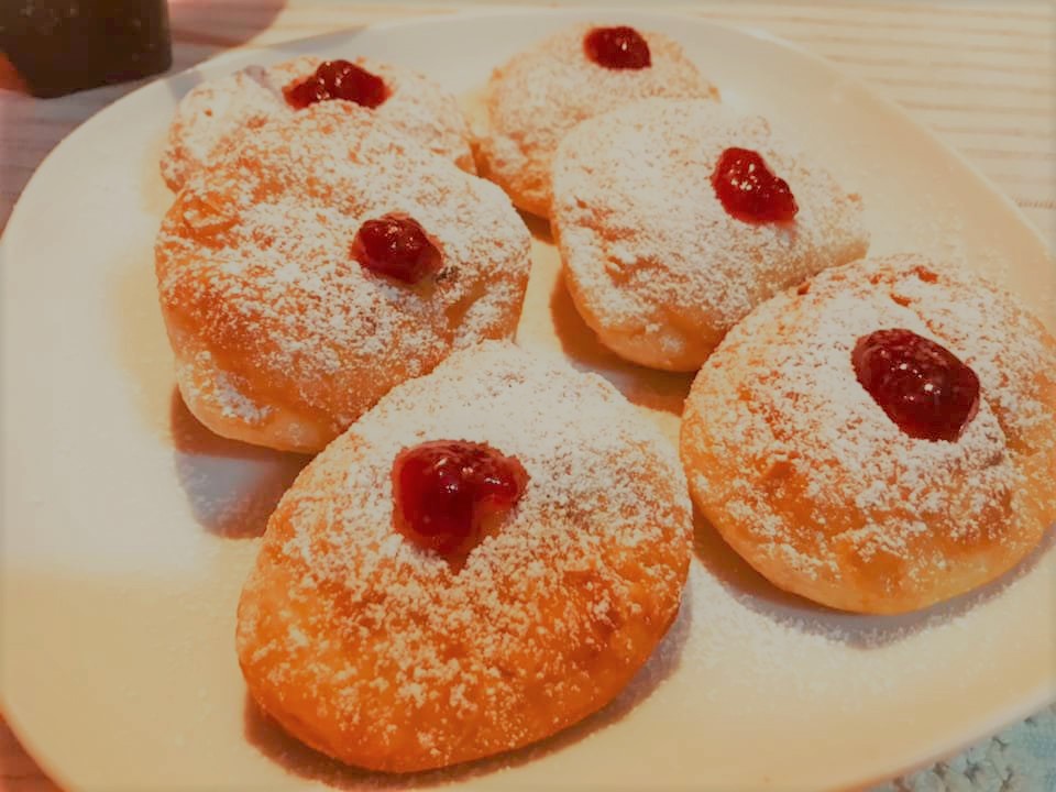 Sufganiot é um doce muito típico em Israel e costuma fazer-se para a festa de Hanukkah (a festa das luzes Judaica). Parecem os nossos sonhos ou um donuts talvez e é delicioso!