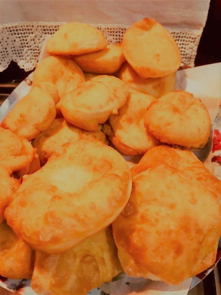 Depois é só colocar bastante farinha na mesa, colocar a massa e mais farinha por cima e com o rolo estender deixando alguma espessura, cortar com um cortador redondo e levar a fritar em óleo quente.