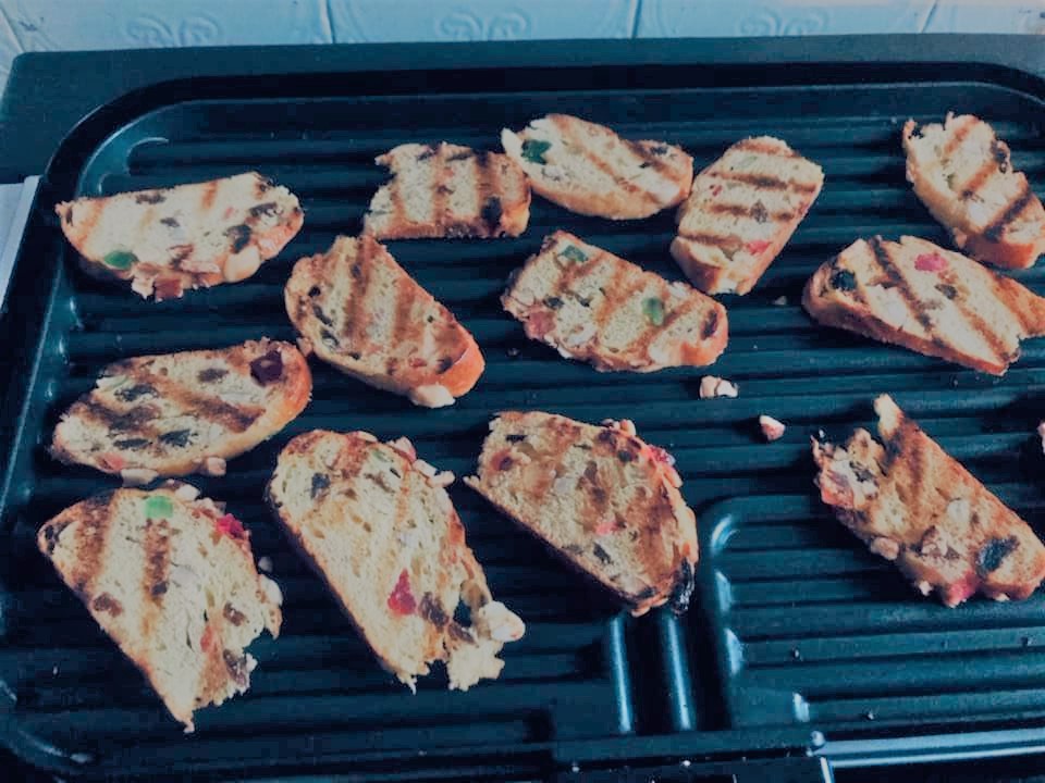 Deve cortar o bolo-rei às fatias fininhas, colocar no grelhador para torrar dos dois lados. Depois é só desfrutar com o que quiser!