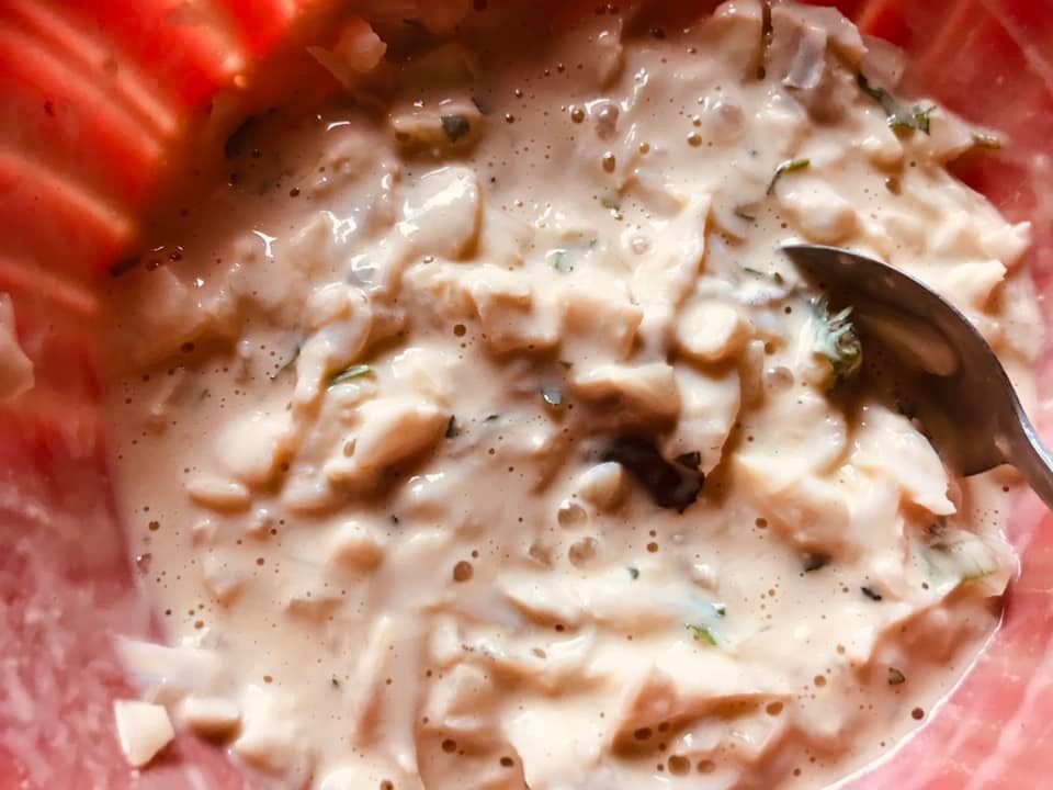 Num recipiente leve o bacalhau, misture os ovos batidos , a salsa e a cebola. Mexa bem e acrescente a farinha. Vá acrescentando água de cozer o bacalhau ate ter uma massa bem cremosa. Retifique os temperos.