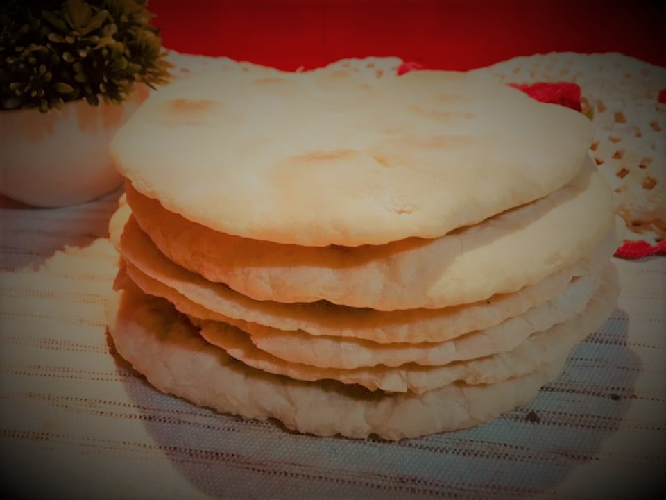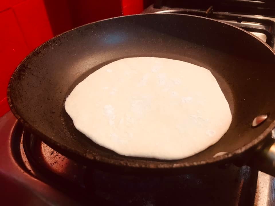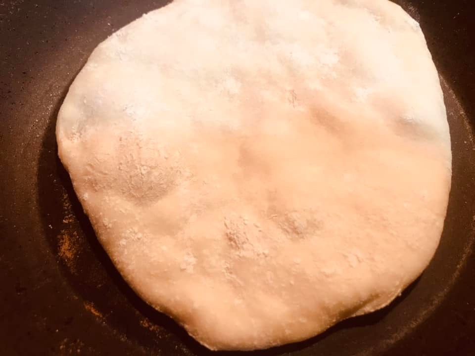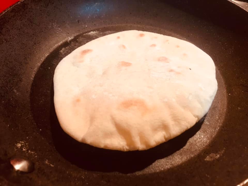 Faça discos com um rolo e colouq na frigideira anti-aderente em fogo médio/alto. Vá virando várias vezes, o pão vai inflar.