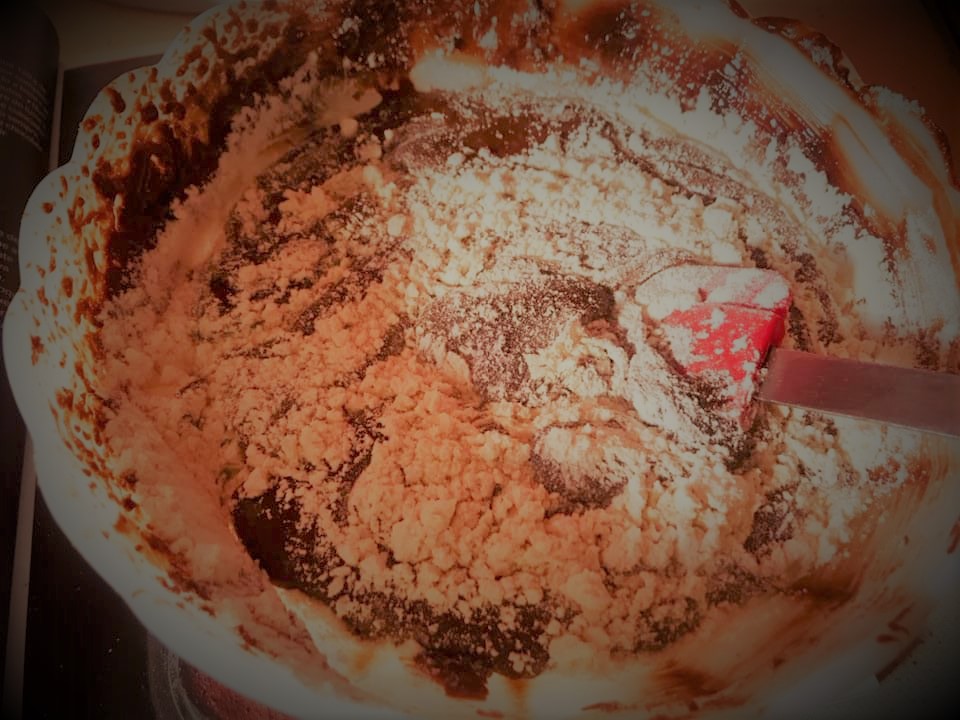 Por fim, acrescente a farinha peneirada e envolva bem no preparado.