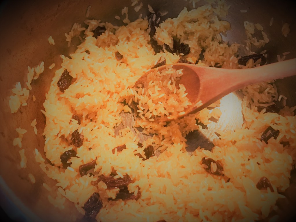 Um arroz diferente e tão saboroso, leva passas, açafrão e amêndoa laminada. Fica incrível para acompanhar uma carne no forno ou carne grelhada.