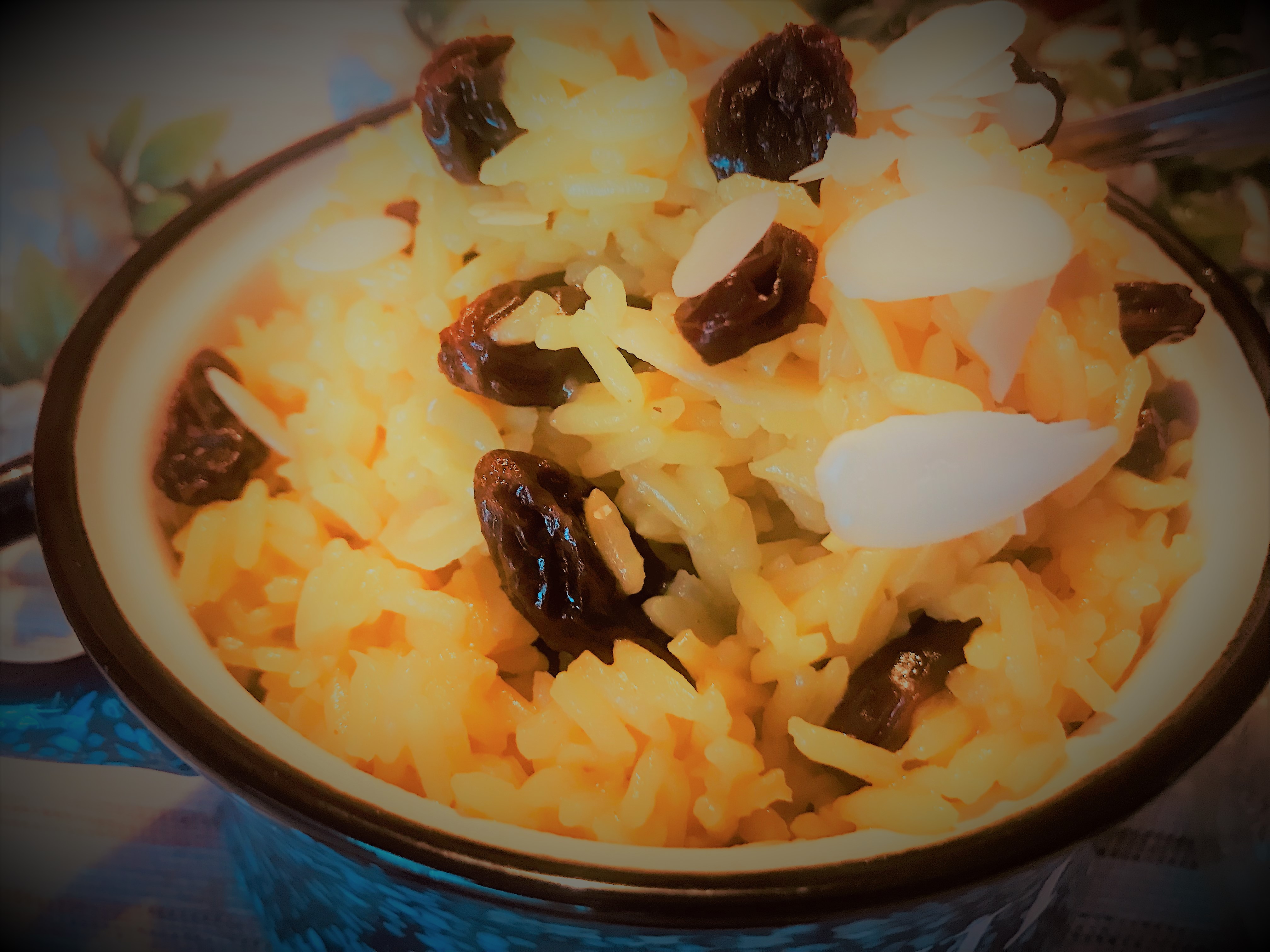 Um arroz diferente e tão saboroso, leva passas, açafrão e amêndoa laminada. Fica incrível para acompanhar uma carne no forno ou carne grelhada.