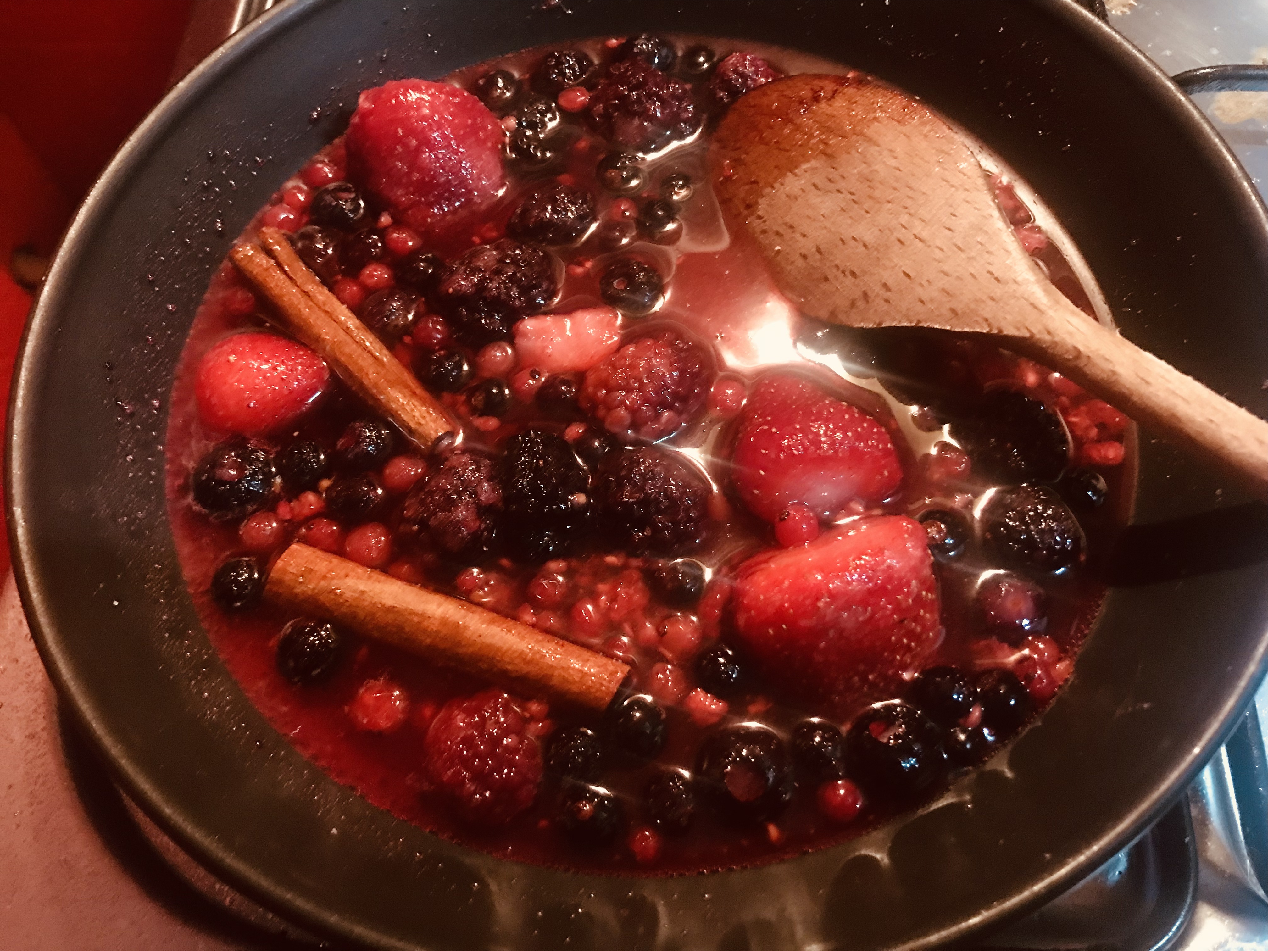 Num tacho colocar todos os ingredientes, exceto o vinho e o sumo de laranja. Deixar ferver e quando estiver com uma boa consistência deitar o vinho e o sumo de laranja e deixar ferver para o álcool evaporar. Se achar muito forte pode deitar mais água.