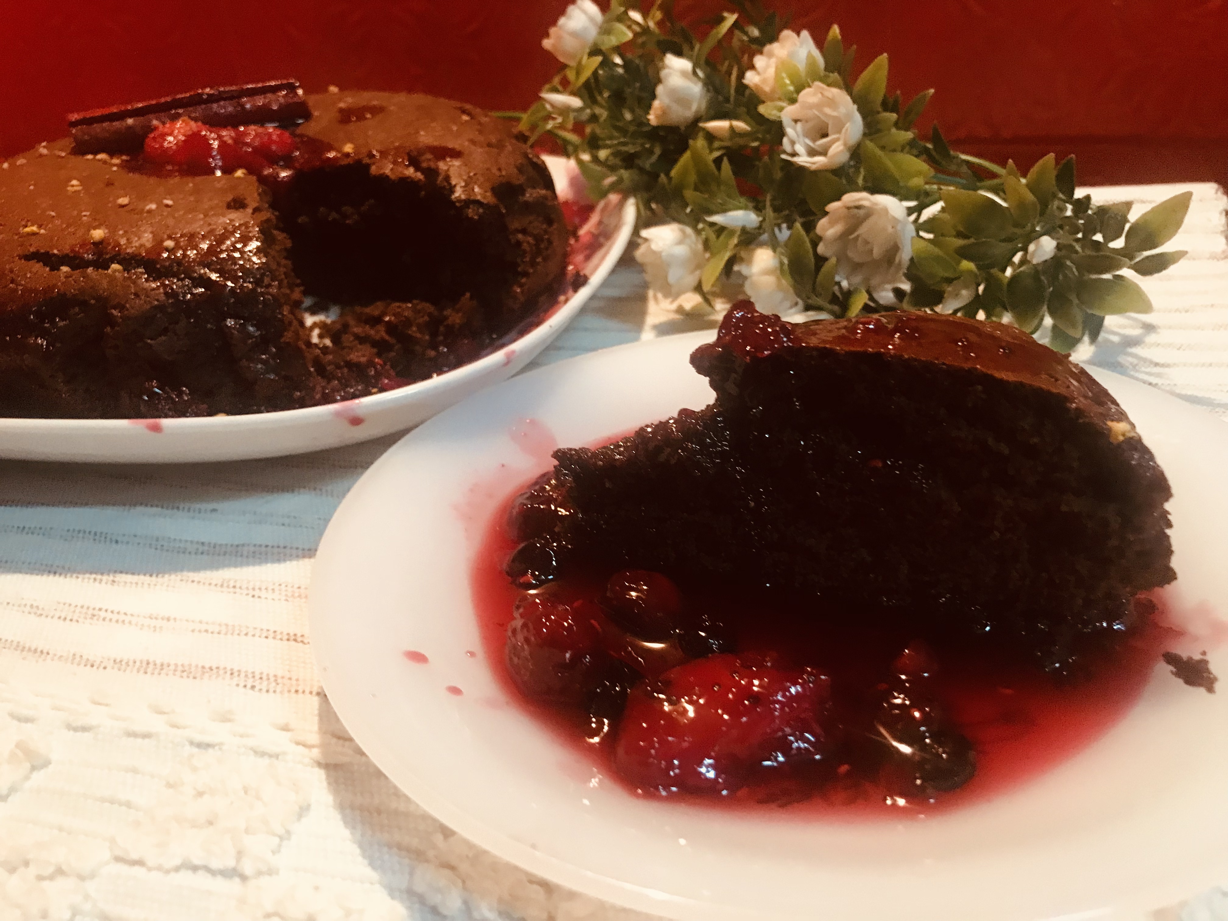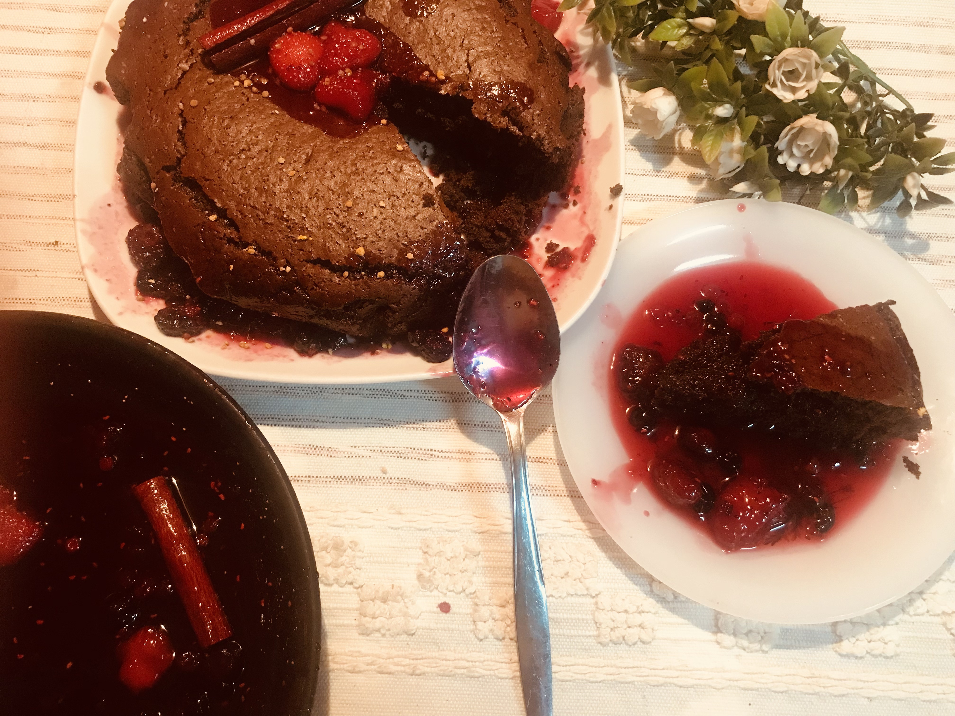Pegue em um bolo de chocolate qualquer (que tenha em casa ou faça este do mercadona que é excelente) e mergulhe-o nesta sangria fantástica, que já fizemos aqui no blog: