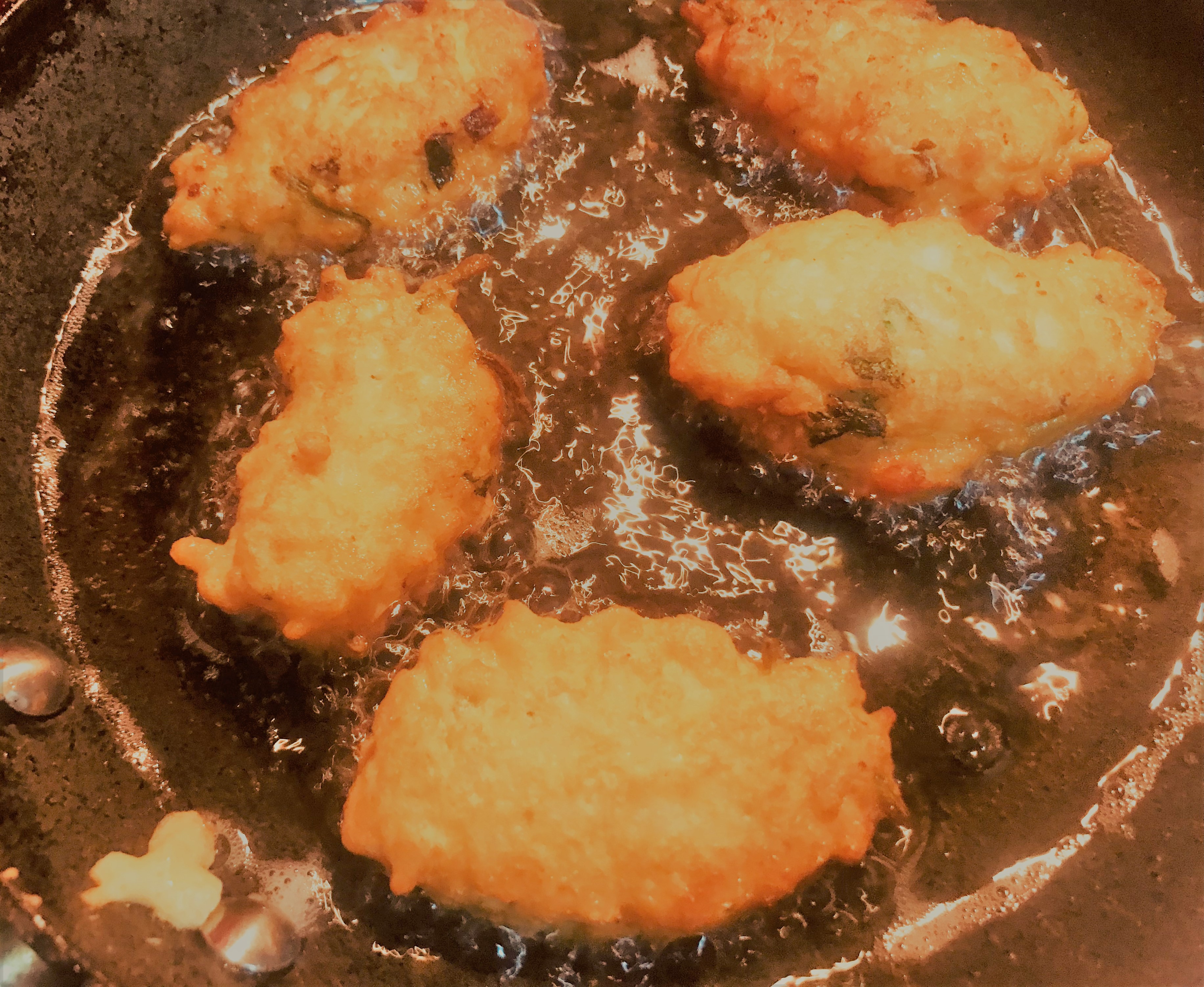 Misture todos os ingredientes e acerte o tempero (sal ou pimenta conforme o gosto). Acerte também a consistência. Numa frigideira com óleo bem quente deite colheradas de massa e frite como se fossem bolinhos de bacalhau. Leve a escorrer o óleo muito bem, para ficarem sequinhos e com o menos gordura possível.