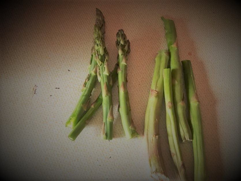 Deve retirar a parte mais dura do espargo, ela vai partir naturalmente. Deverá raspar levemente. Depois partir os espargos consoante o gosto.