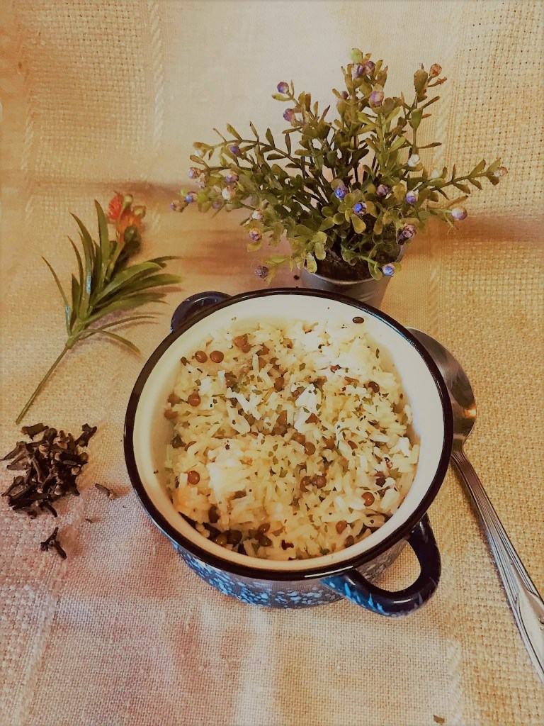 Esta receita é muito fácil e basicamente faz-se como se de um arroz normal se tratasse, mas acrescentam-se as lentilhas quase no fim. Eu usei lentilhas de lata para facilitar.