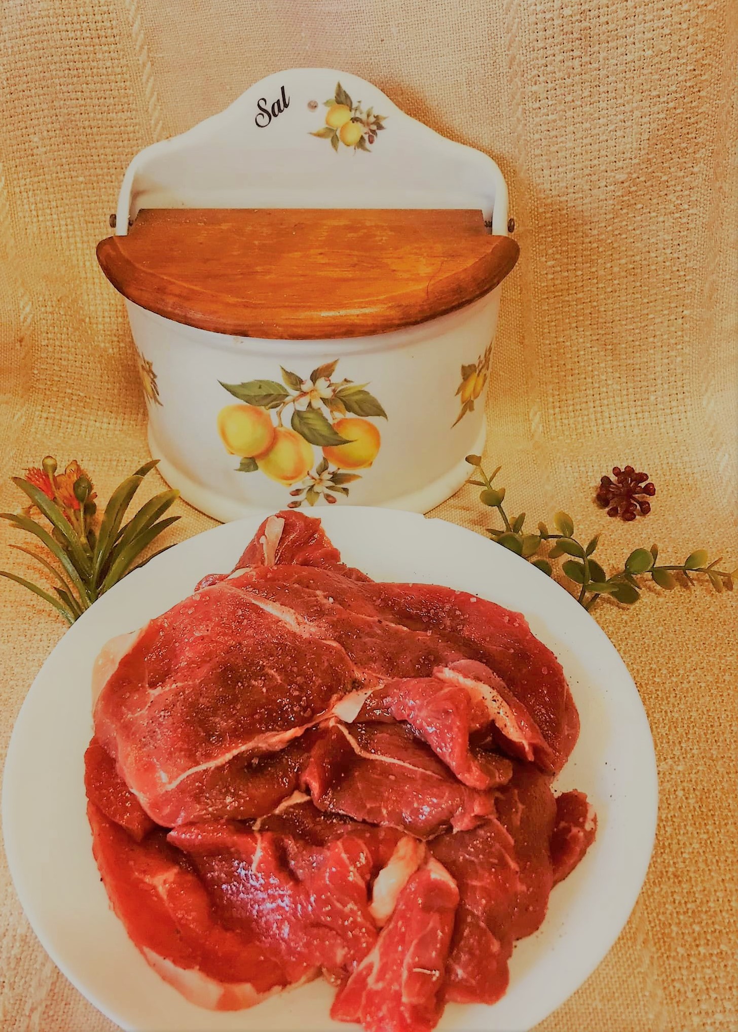 Deve temperar os bifes com sal e pimenta preta. Numa frigideira anti-aderente coloque uma noz de manteiga e frite os bifes. Reserve os bifes.
