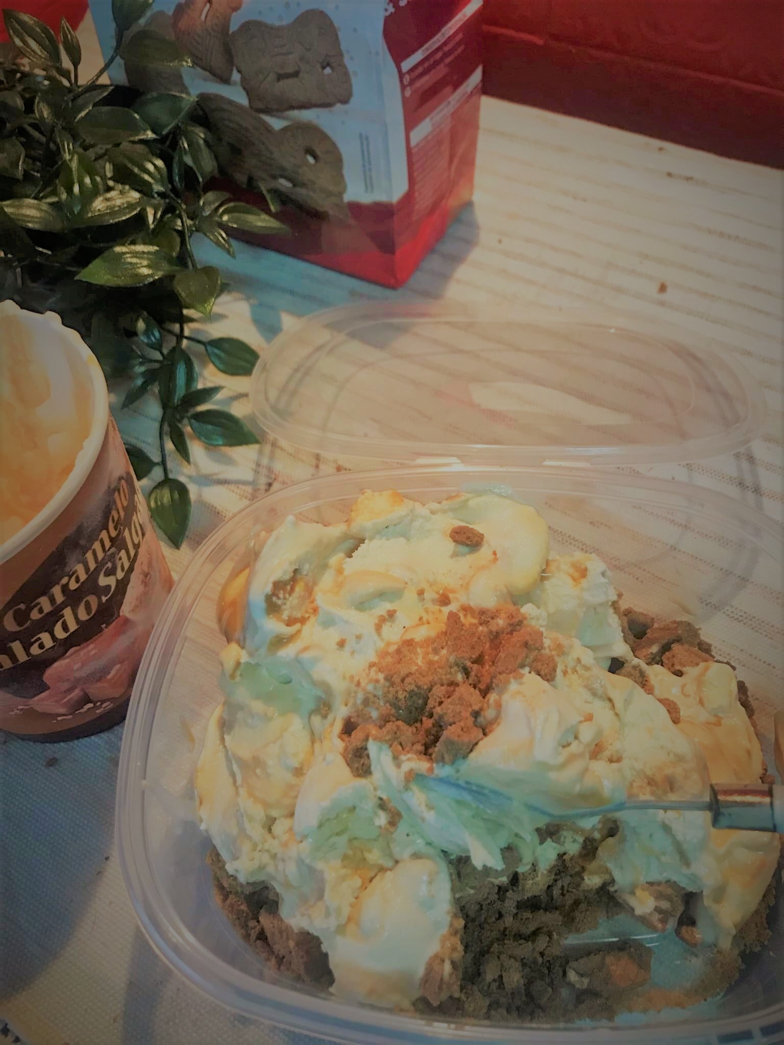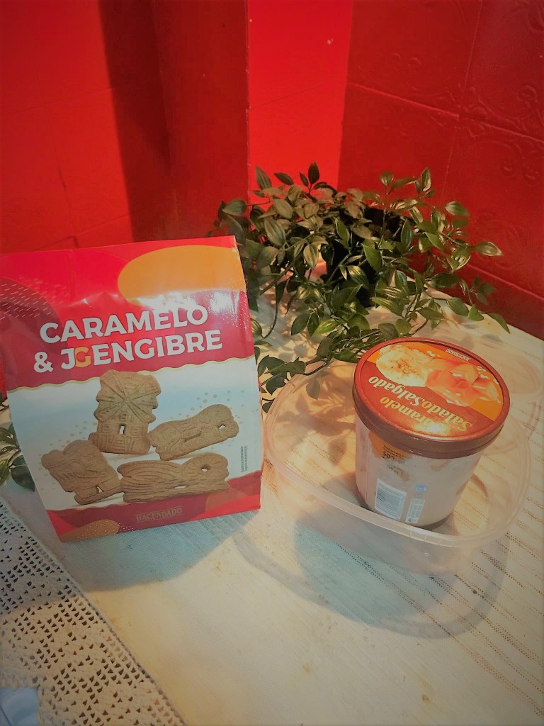 Eu aqui coloco estas deliciosas bolachas natalícias (à venda no mercadona) esmagadas e envolvidas com o gelado.