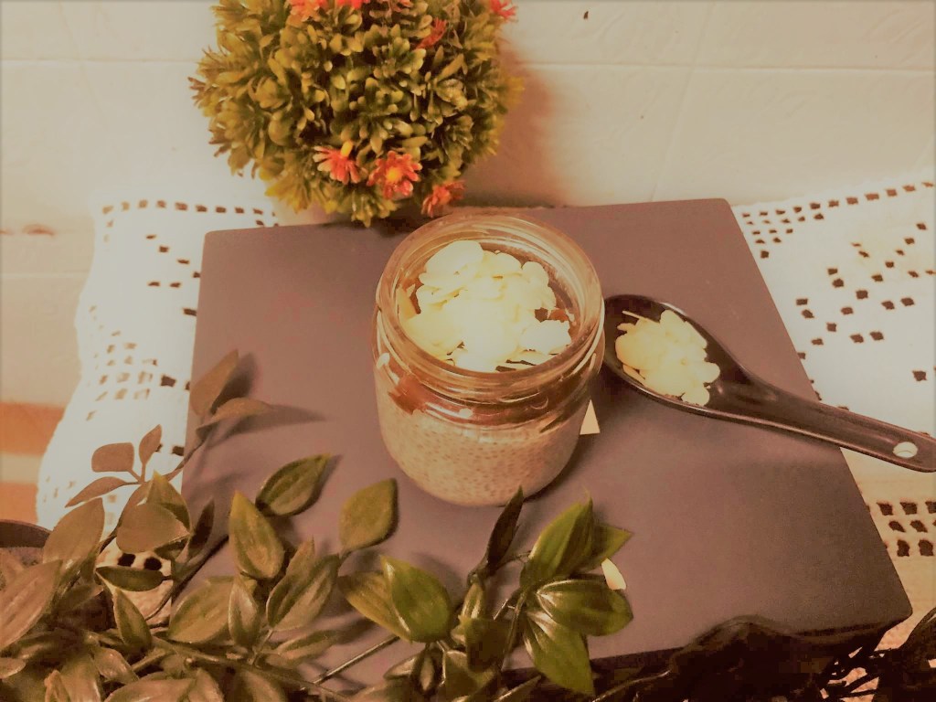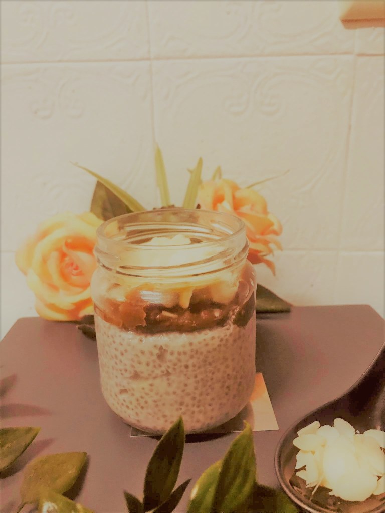 Misturar todos os ingredientes e levar ao frigorífico de um dia para o outro. Colocar o topping que quiser.