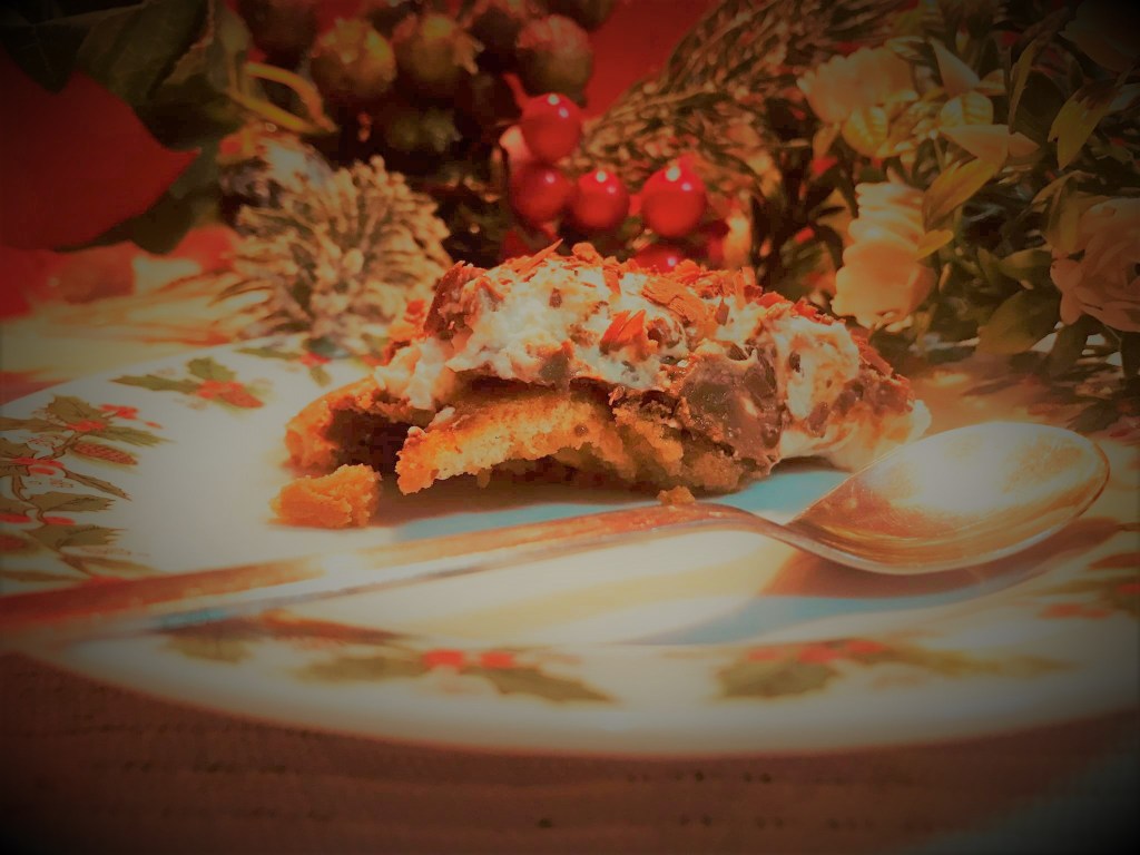 Numa forma grande de vidro, deve forrar o fundo com os biscoitos mergulhados no café e vinho do Porto e espalhar por cima a ganache já fria.