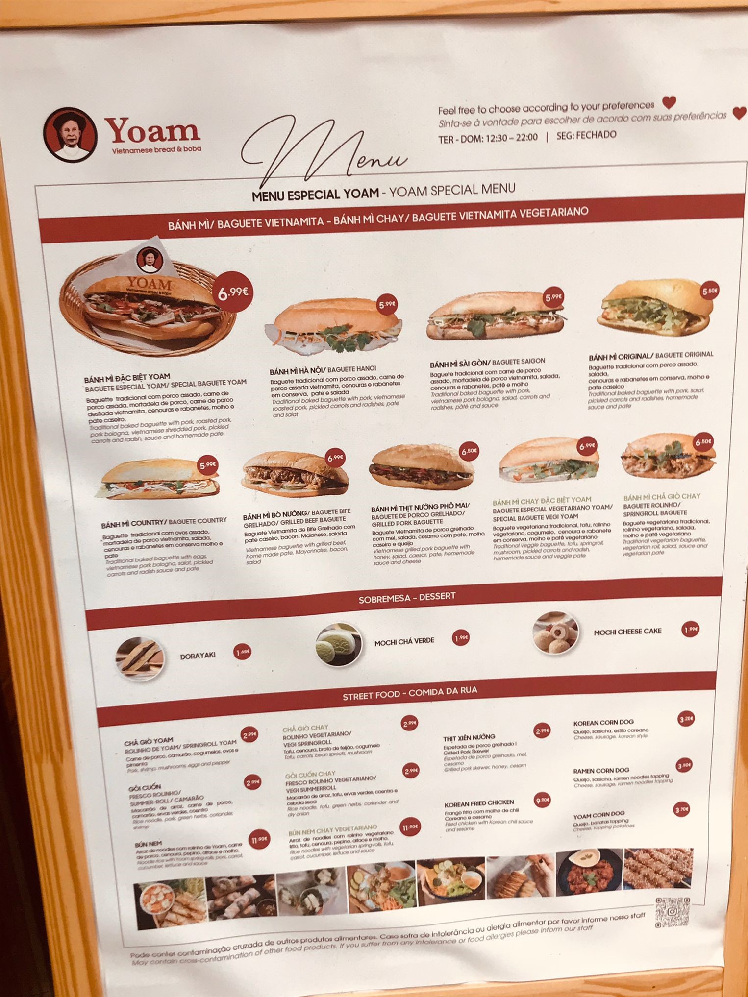 Website: https://yoam.pt/, where you can download the full menu, book a table or even find out more about street food in Vietnam.