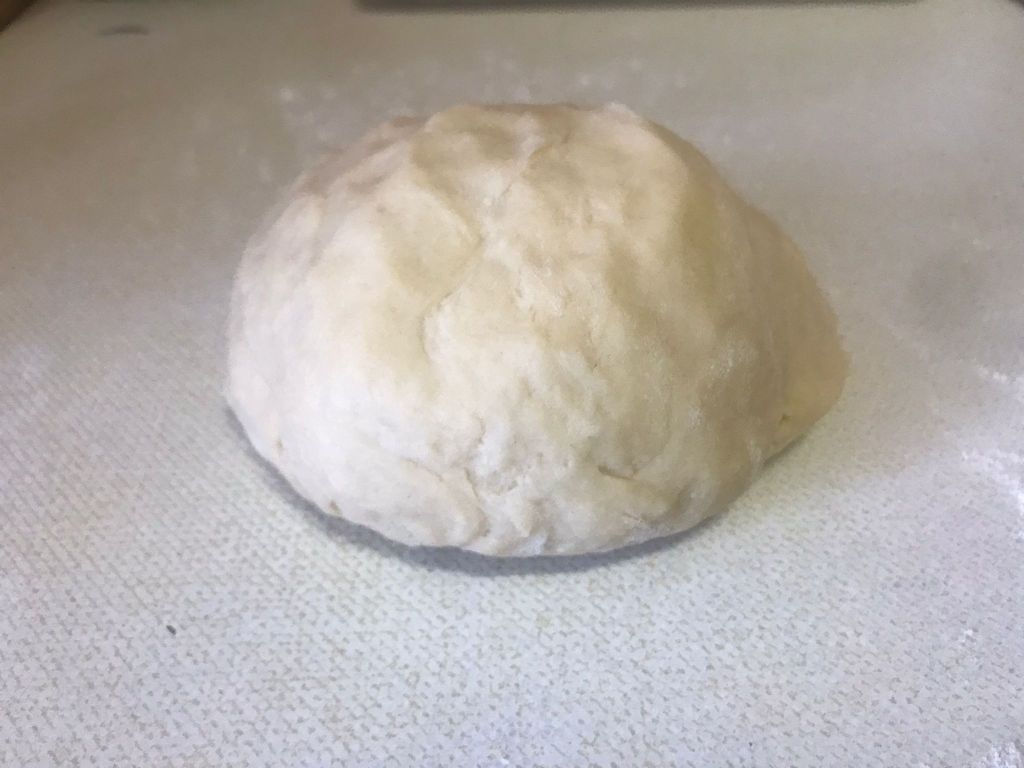 Combine a farinha, o sal e a manteiga e misture a massa com as mãos. Adicione o ovo e a água, continuando a amassar.