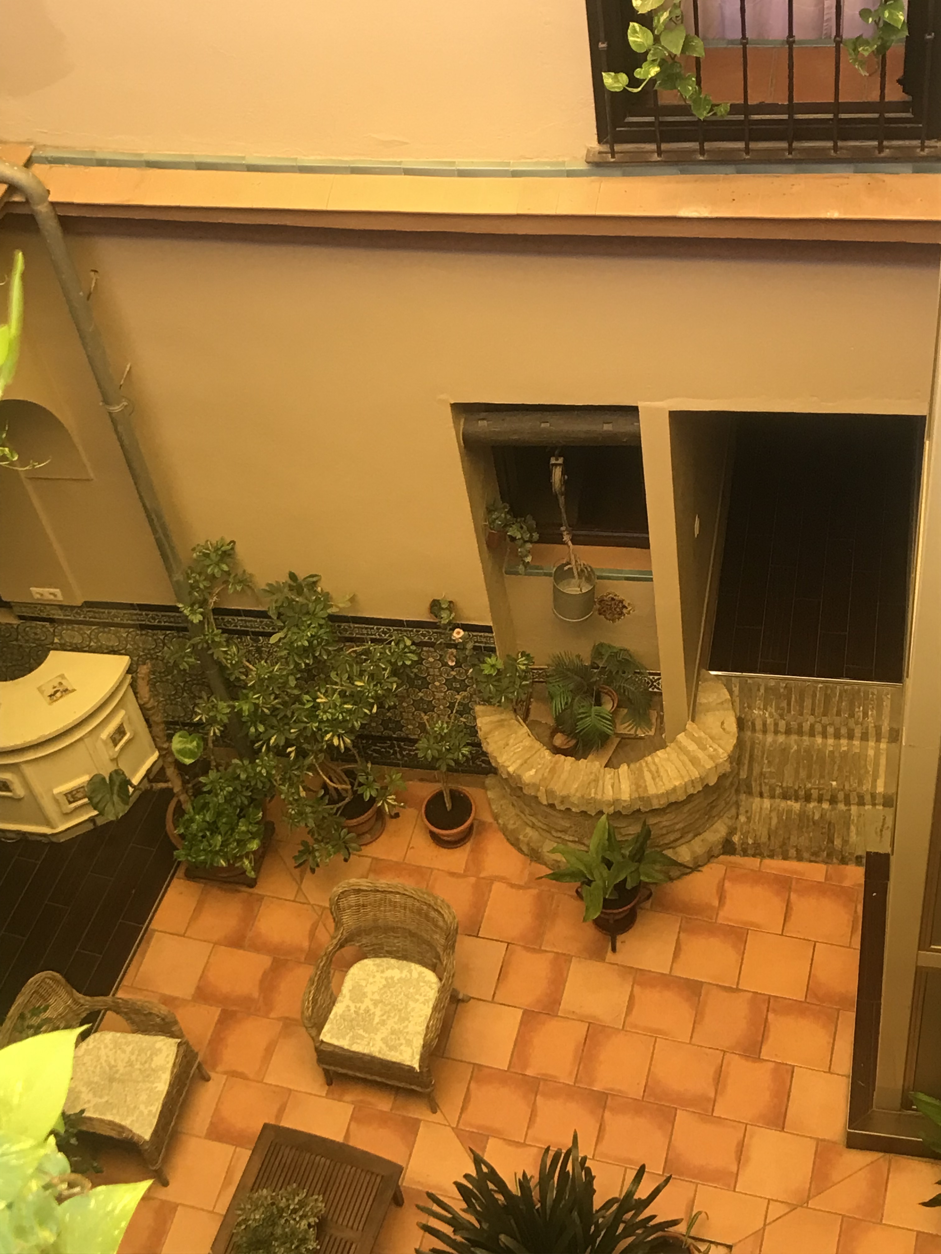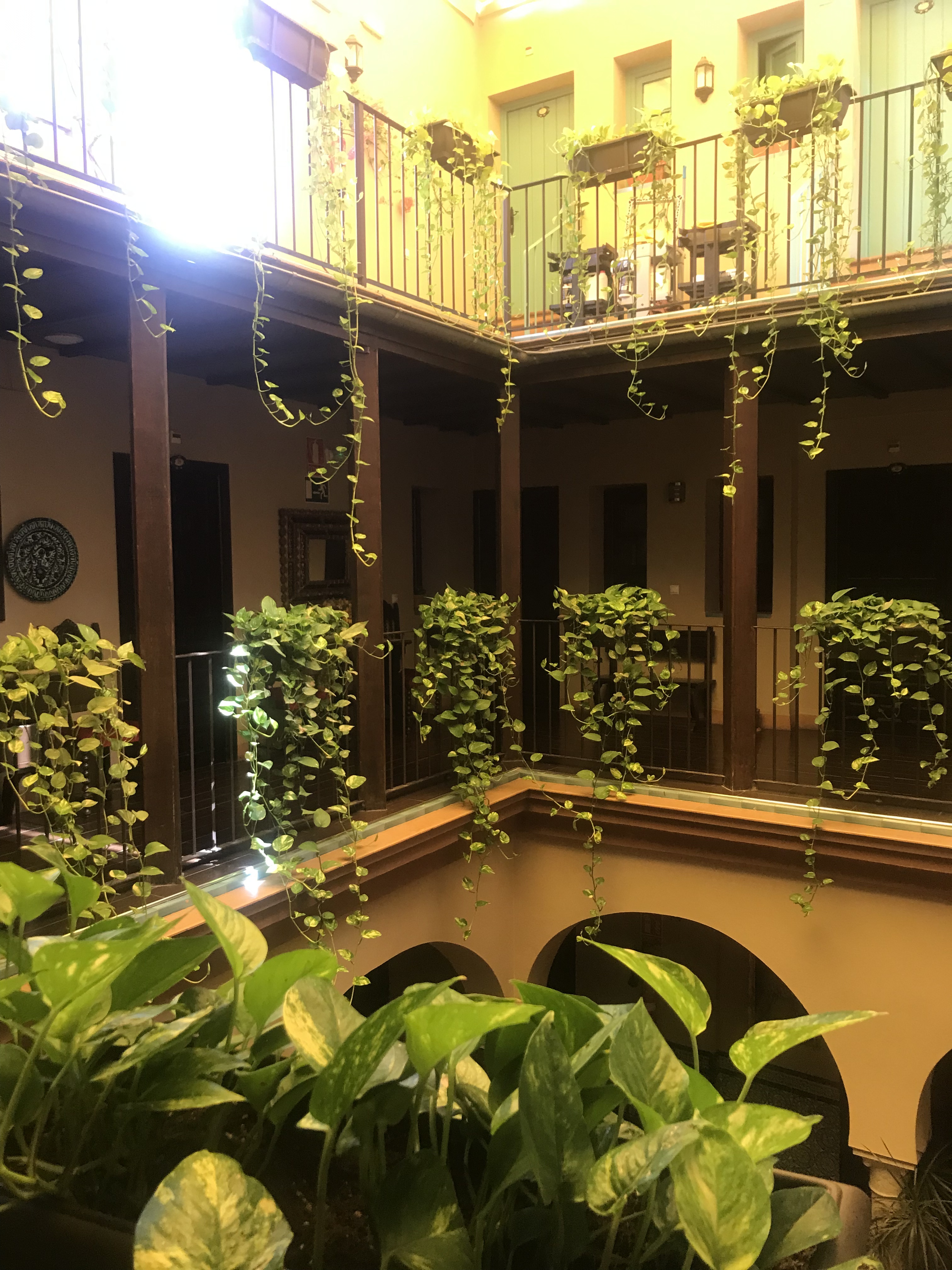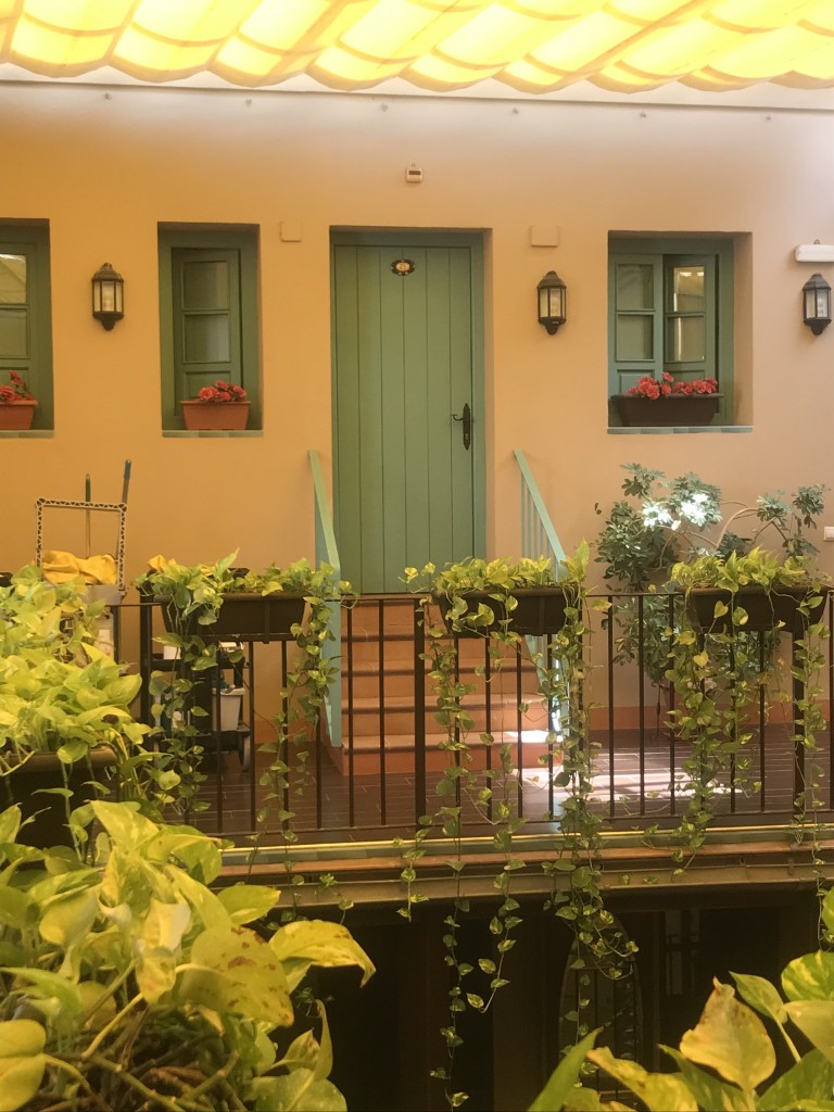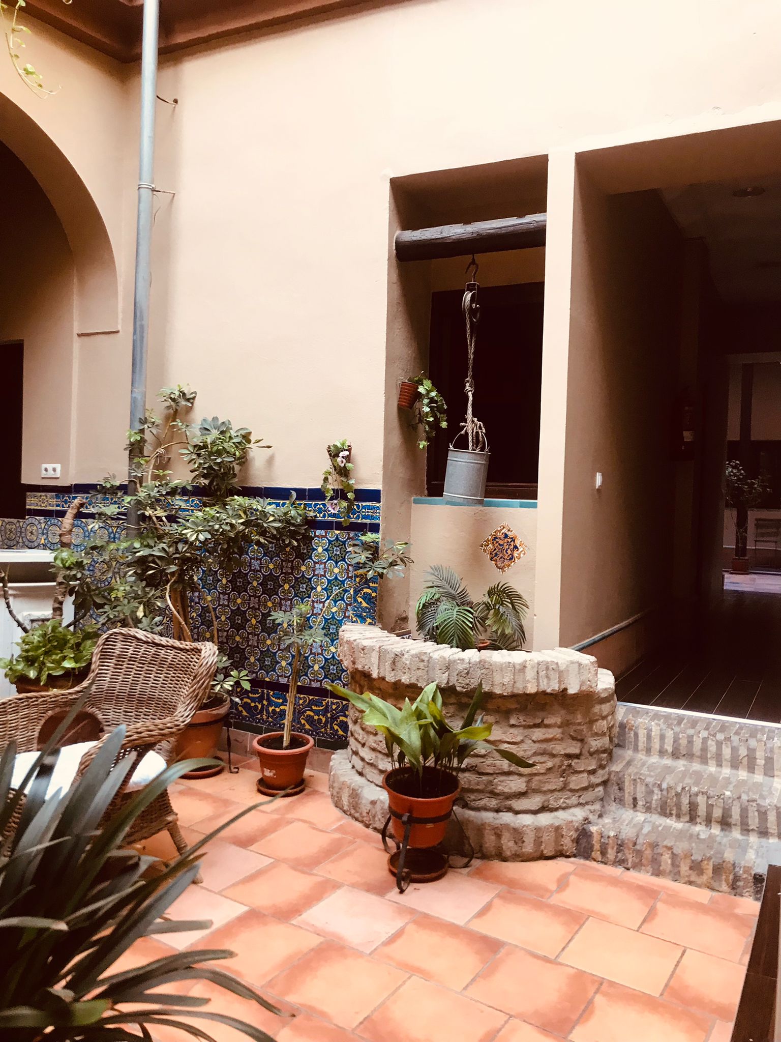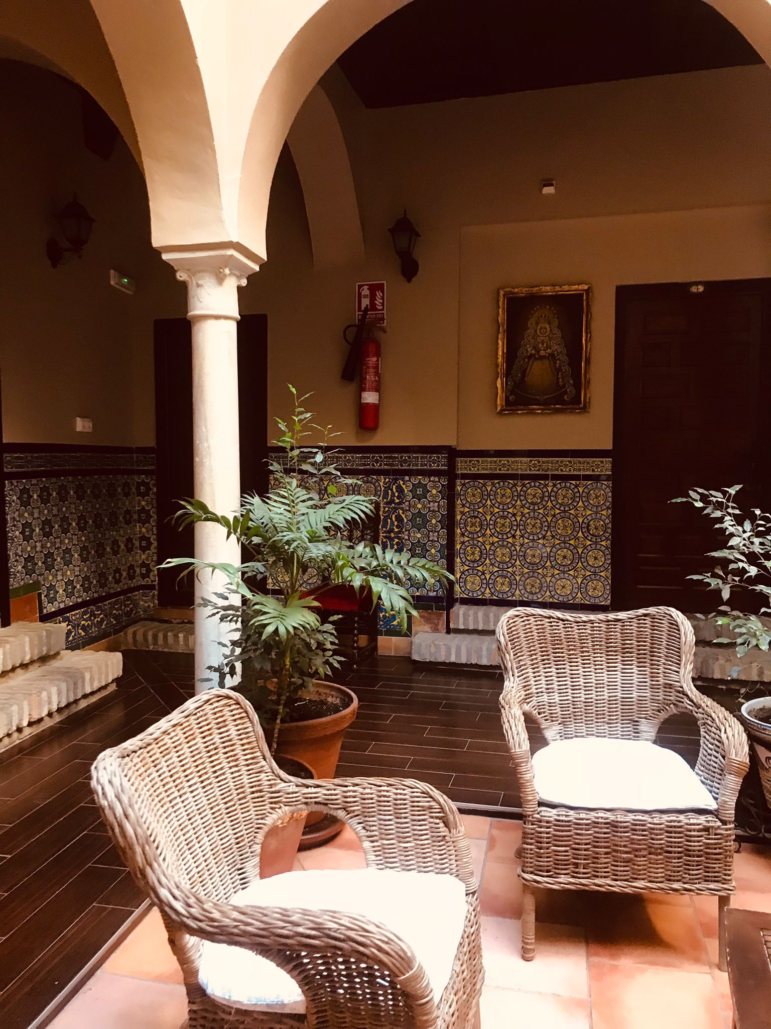 Ficamos no Hotel Patio de las Cruces, que na verdade é uma verdadeira joia escondida no coração do Bairro de Santa Cruz. A sua localização central, no meio das ruas pitorescas e ruelas estreitas, permitiu-me sentir-me imersa na autenticidade da vida sevilhana. Desde o momento em que entrei no pátio interior, fui recebida por uma atmosfera acolhedora e encantadora, repleta de plantas exuberantes e decoração tradicional.