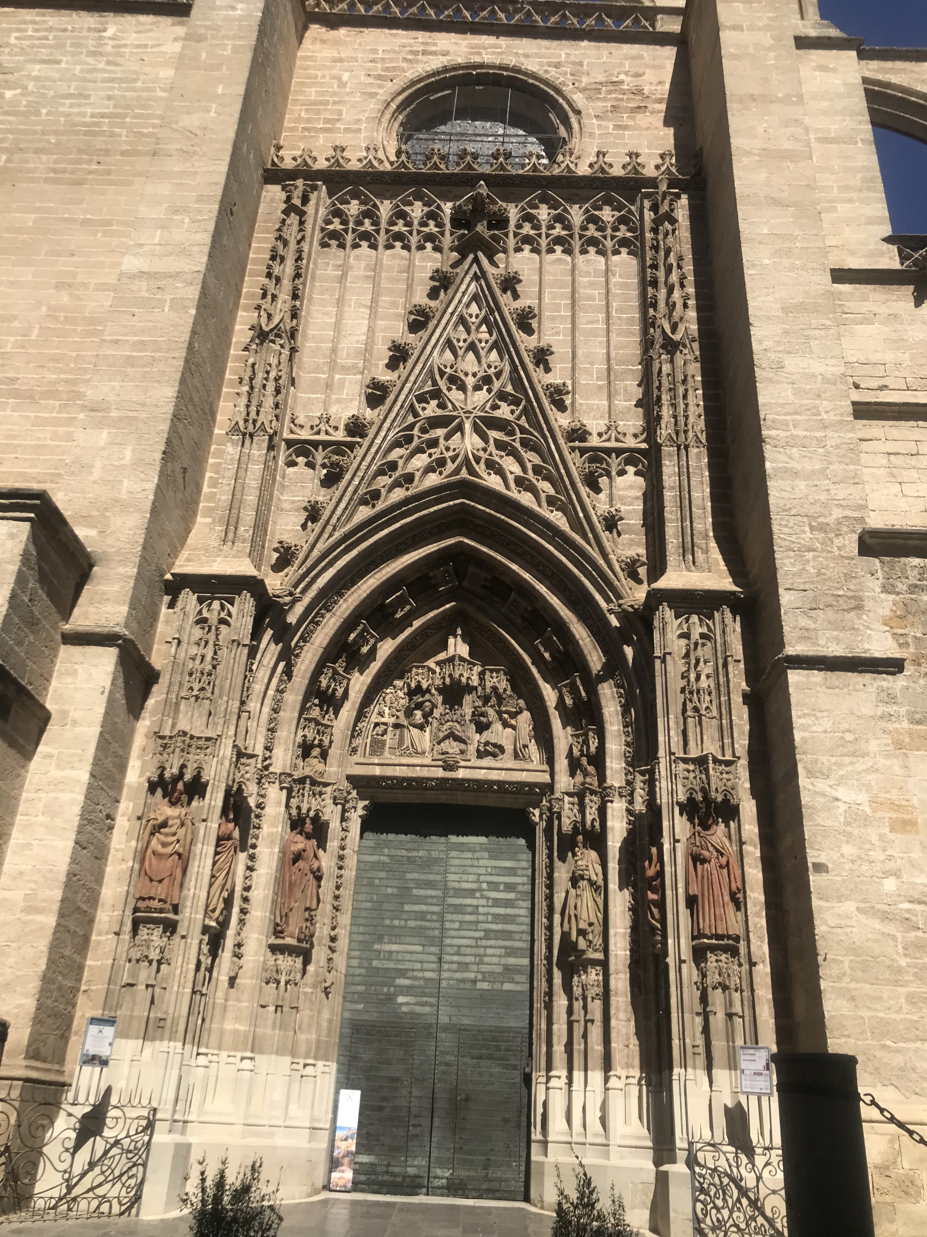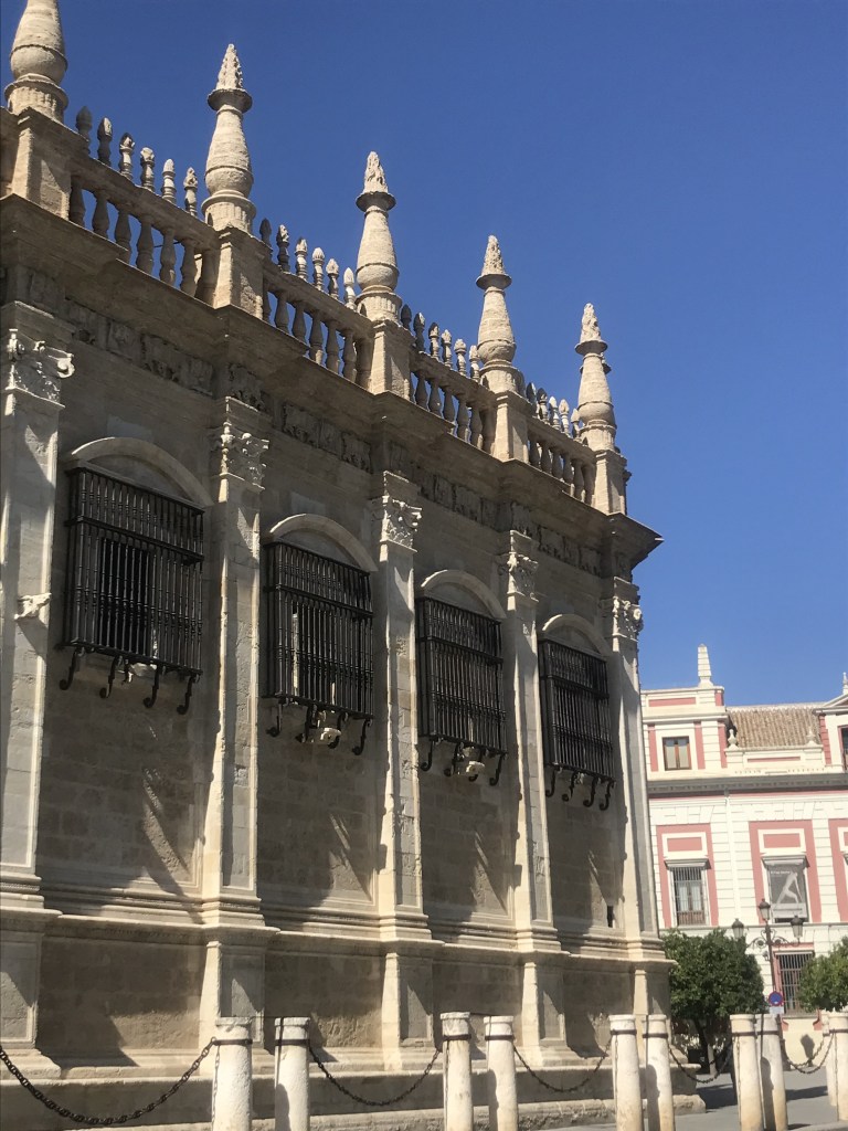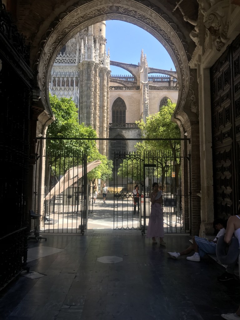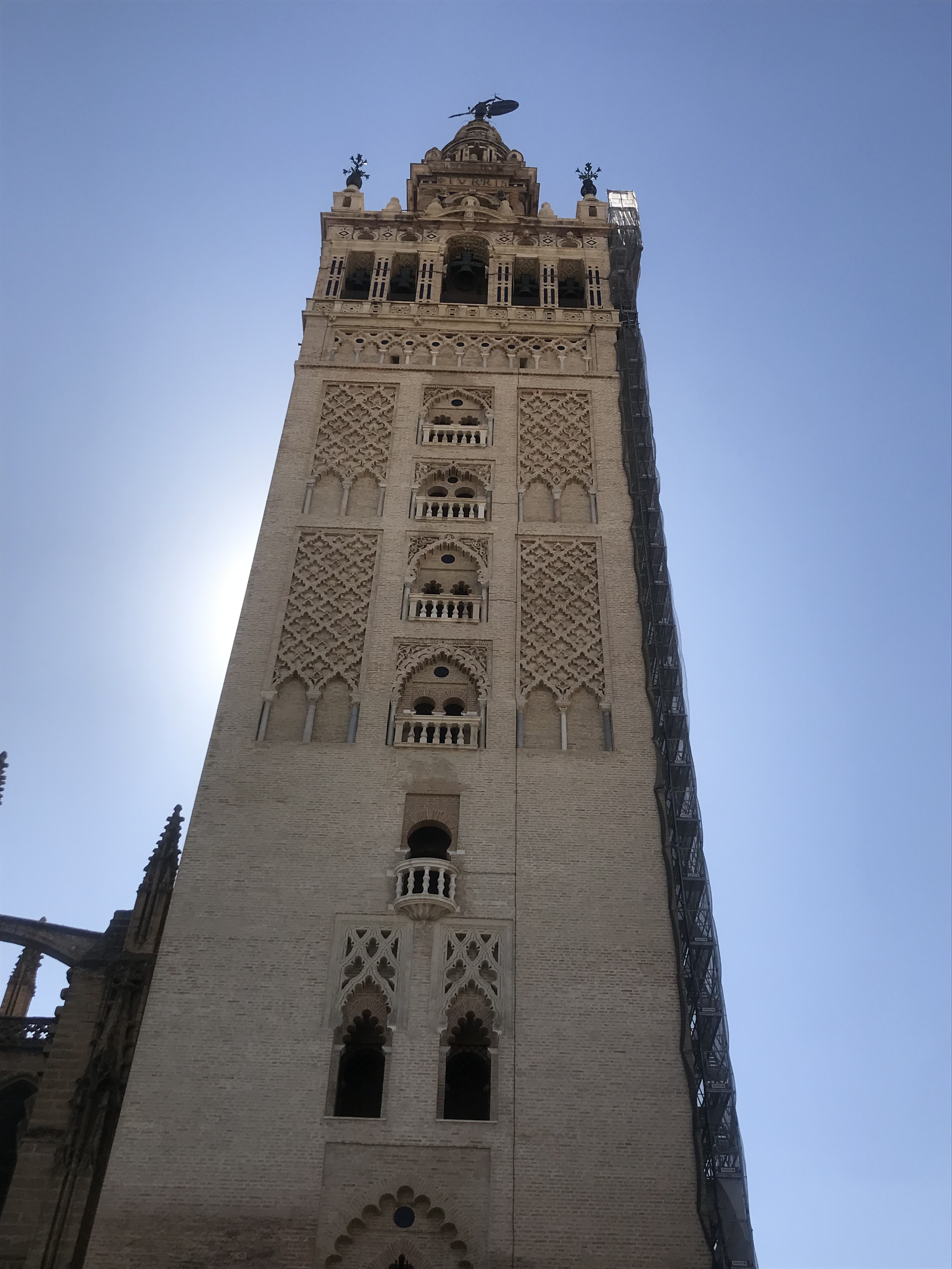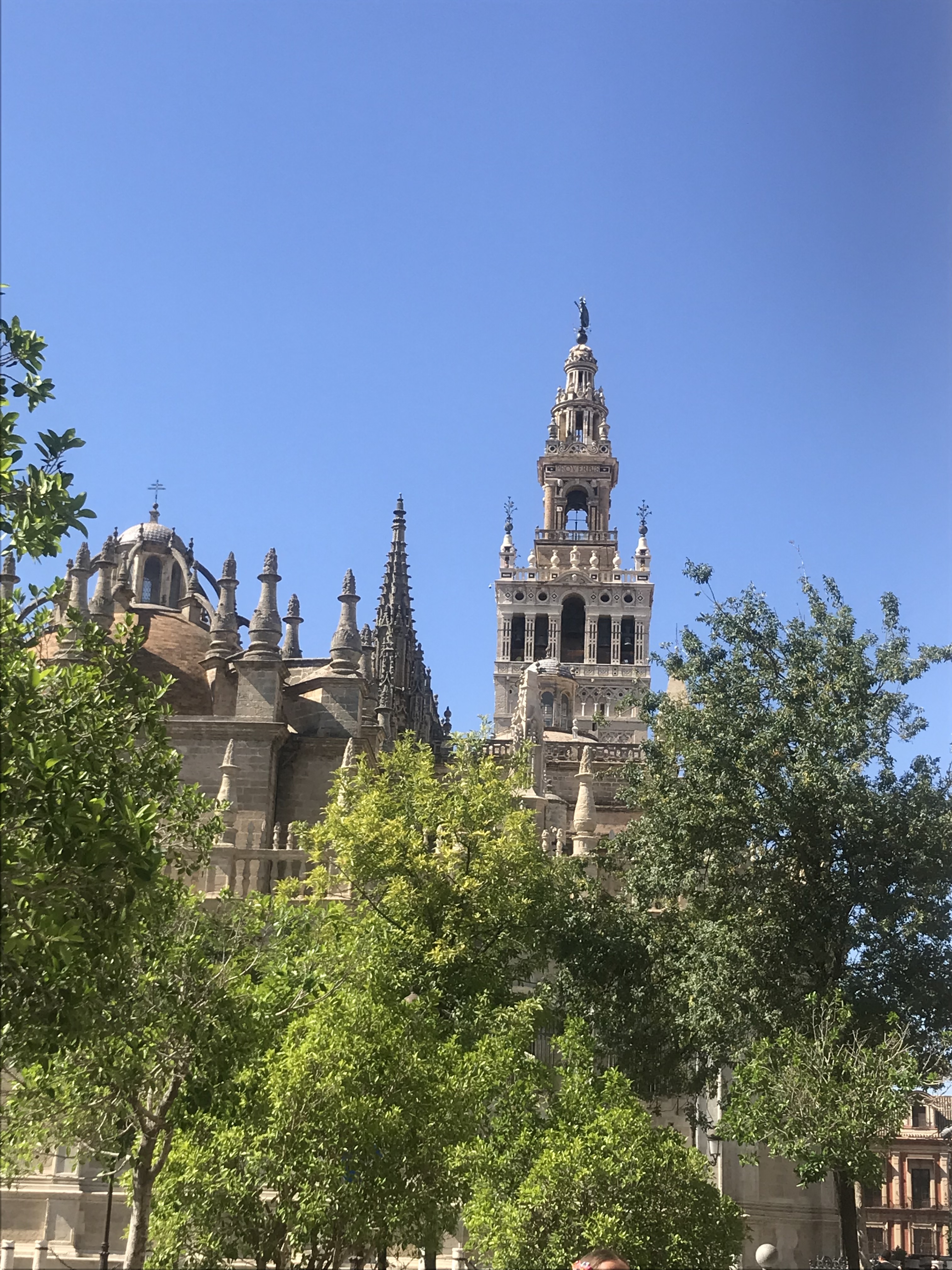 A Catedral de Sevilha e a Giralda: A majestosa Catedral de Sevilha não apenas domina o horizonte, mas também alberga uma riqueza de arte sacra e arquitetura imponente. A Giralda é de tirar o fôlego.