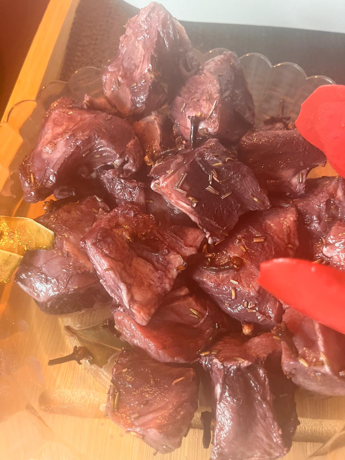 Na mesma panela, adicione os cubos de carne, garantindo que cada pedaço esteja dourado por todos os lados. Retire a carne da panela e reserve.