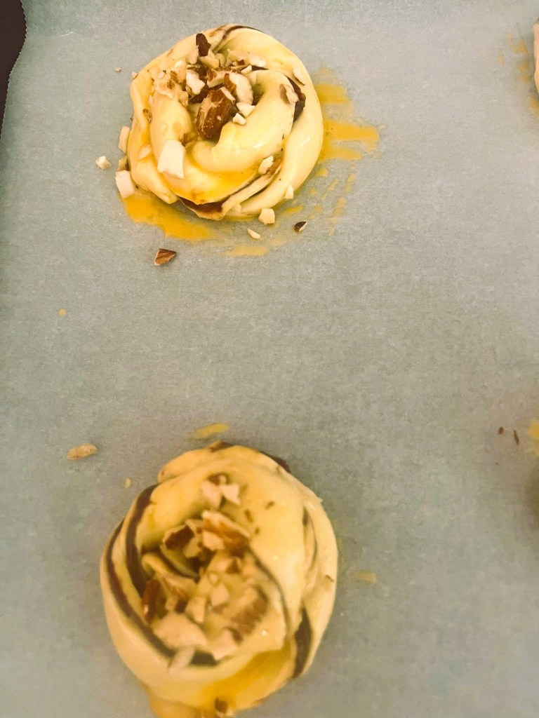Pincele cada folhado com gema de ovo batida para dar um acabamento dourado.