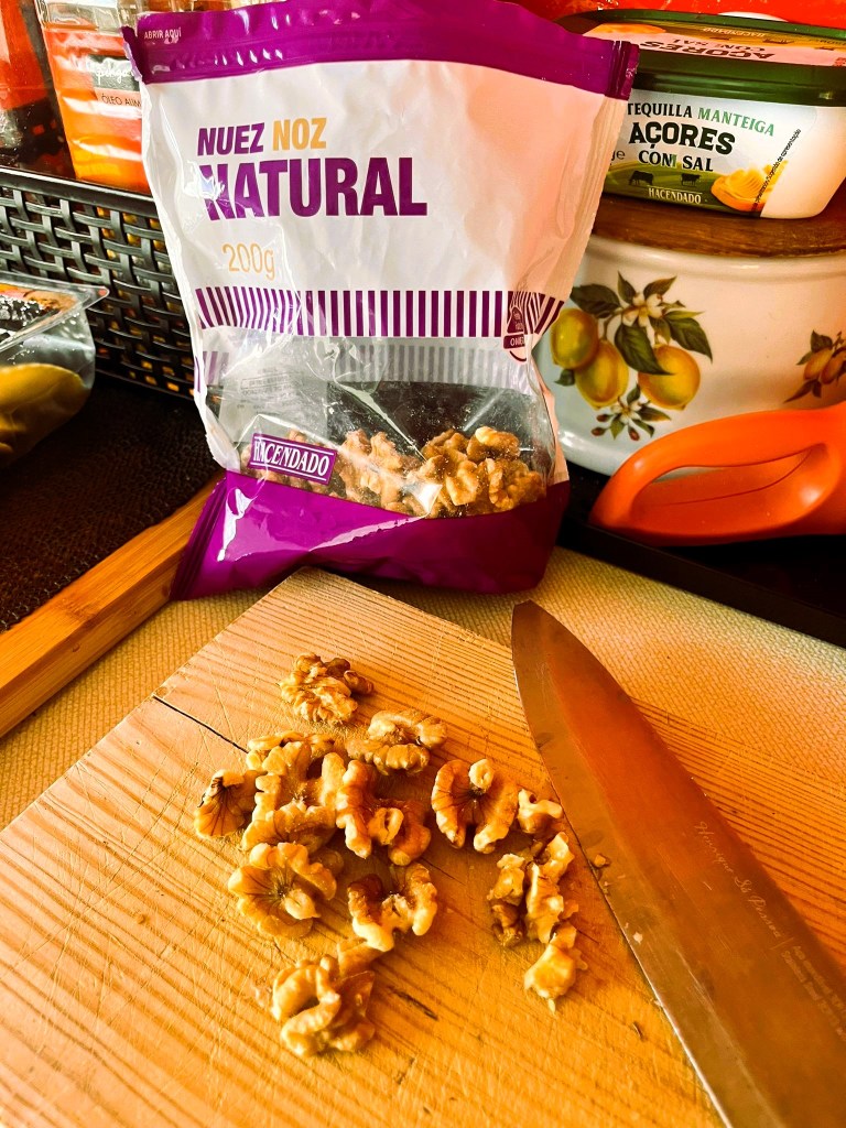 - 1/2 chávena (cerca de 60g) de nozes partidas grosseiramente
