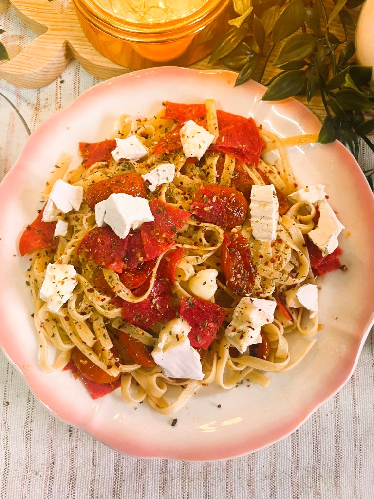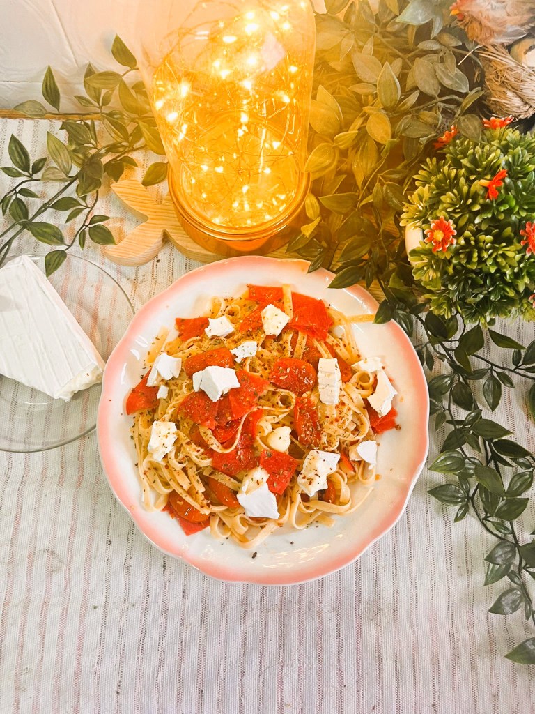 Esta receita de esparguete é simples, rápida e deliciosa, perfeita para qualquer refeição. O toque do queijo brie no final adiciona uma cremosidade irresistível ao prato.
