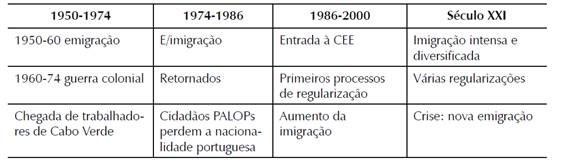 Fonte. Adaptado de Padilla & Matias (s.d.), Migratory and nationality politics in Portugal