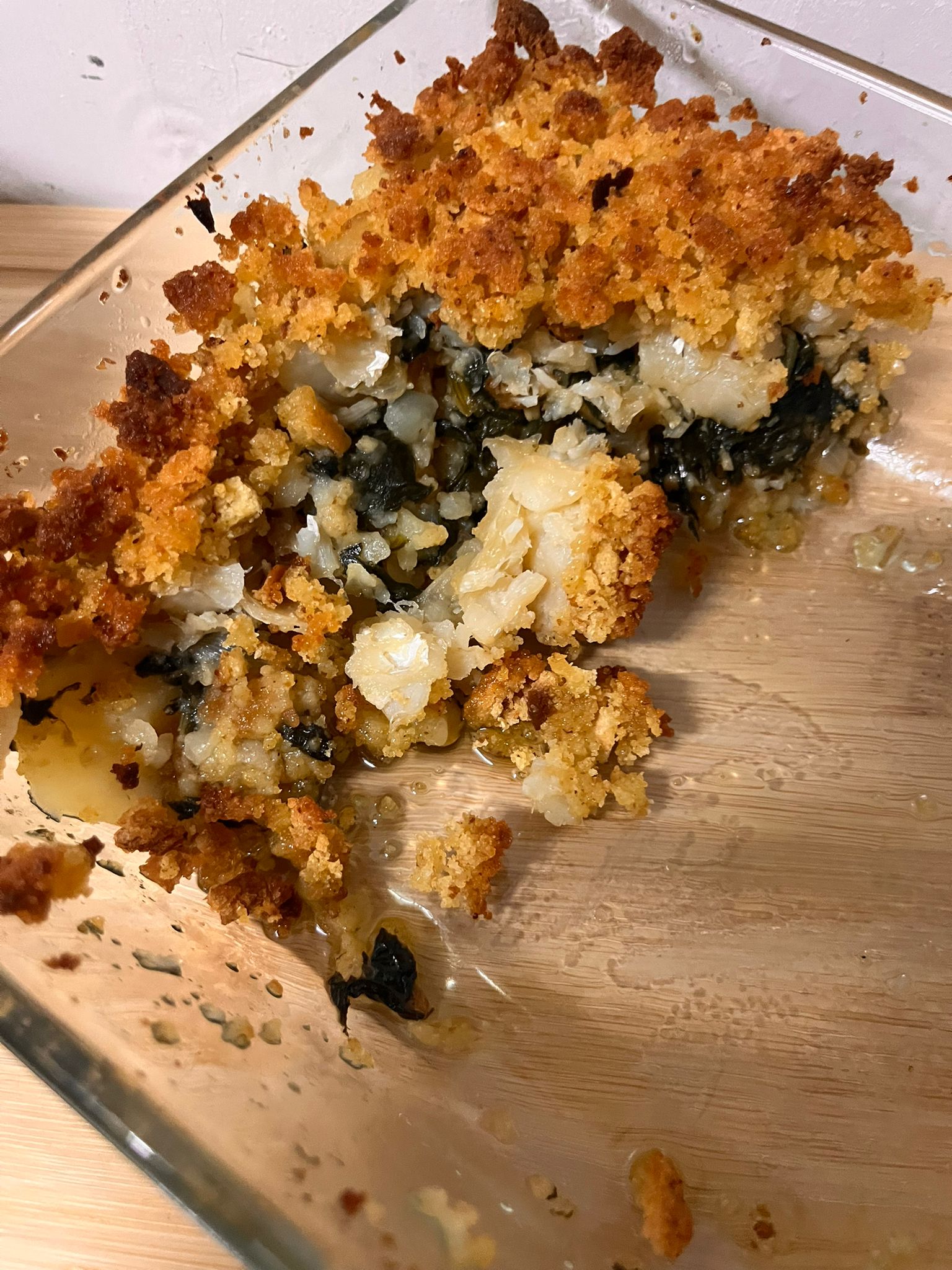 O bacalhau é, sem dúvida, um dos ingredientes mais emblemáticos da gastronomia portuguesa. Versátil, saboroso e nutritivo, presta-se a inúmeras combinações que conquistam gerações à mesa. Nesta receita, apresento uma versão especial do tradicional bacalhau com broa: em vez dos grelos, utilizei espinafres, que conferem uma textura mais suave e um sabor delicado, sem perder a essência do prato. O contraste entre o bacalhau lascado, a cebola caramelizada, os espinafres salteados e a crocância da broa de milho torna este prato irresistível, perfeito tanto para um almoço de família como para uma ocasião especial.