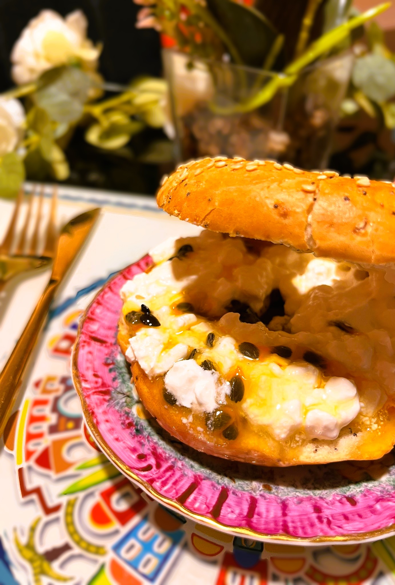 Se gosta de combinações originais e de receitas práticas que trazem sabor e frescura ao dia, experimente este bagel com queijo cottage, maracujá e mel é surpreendentemente simples e irresistível. ✨