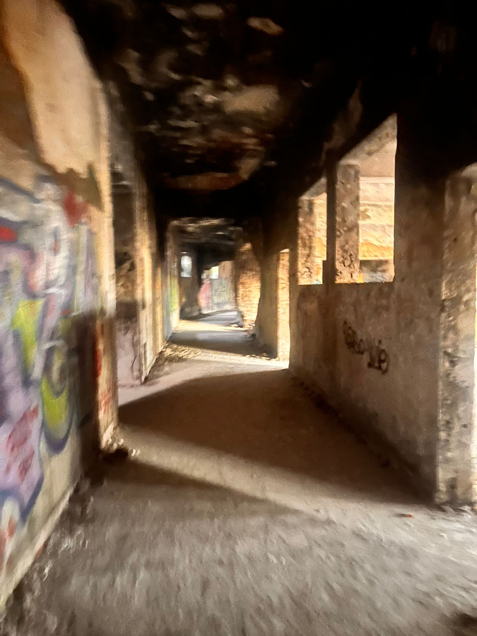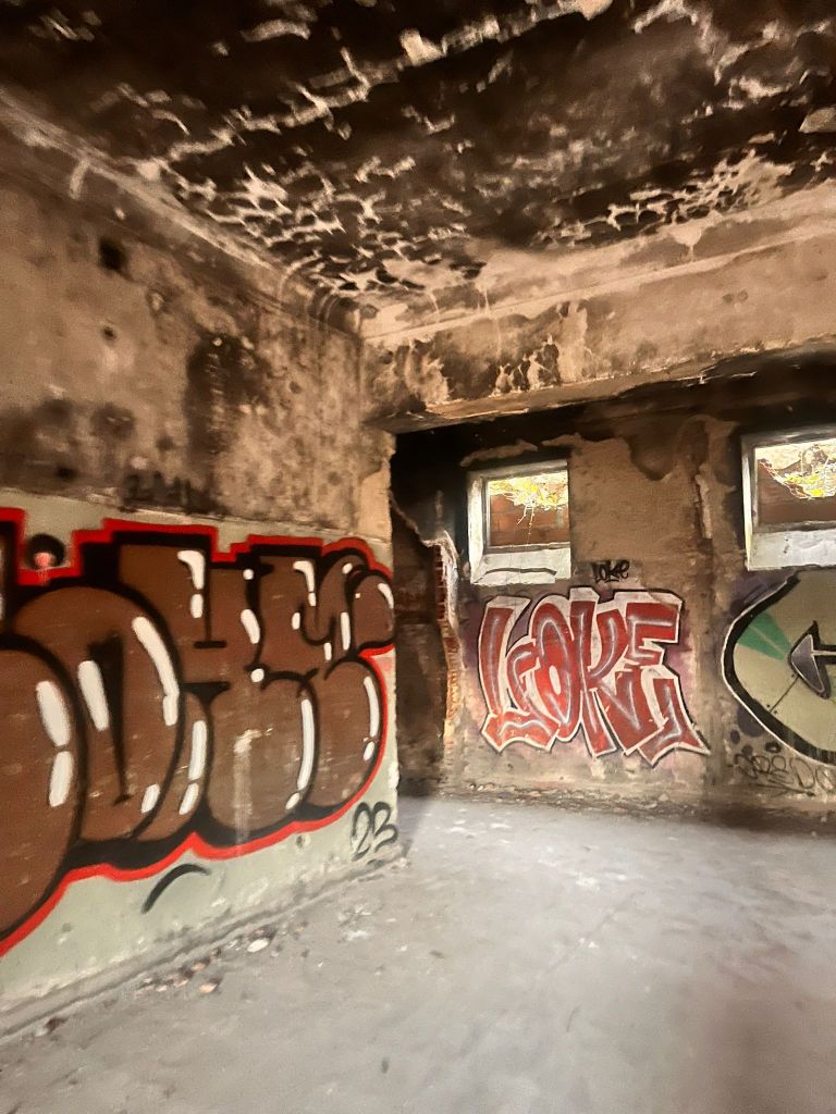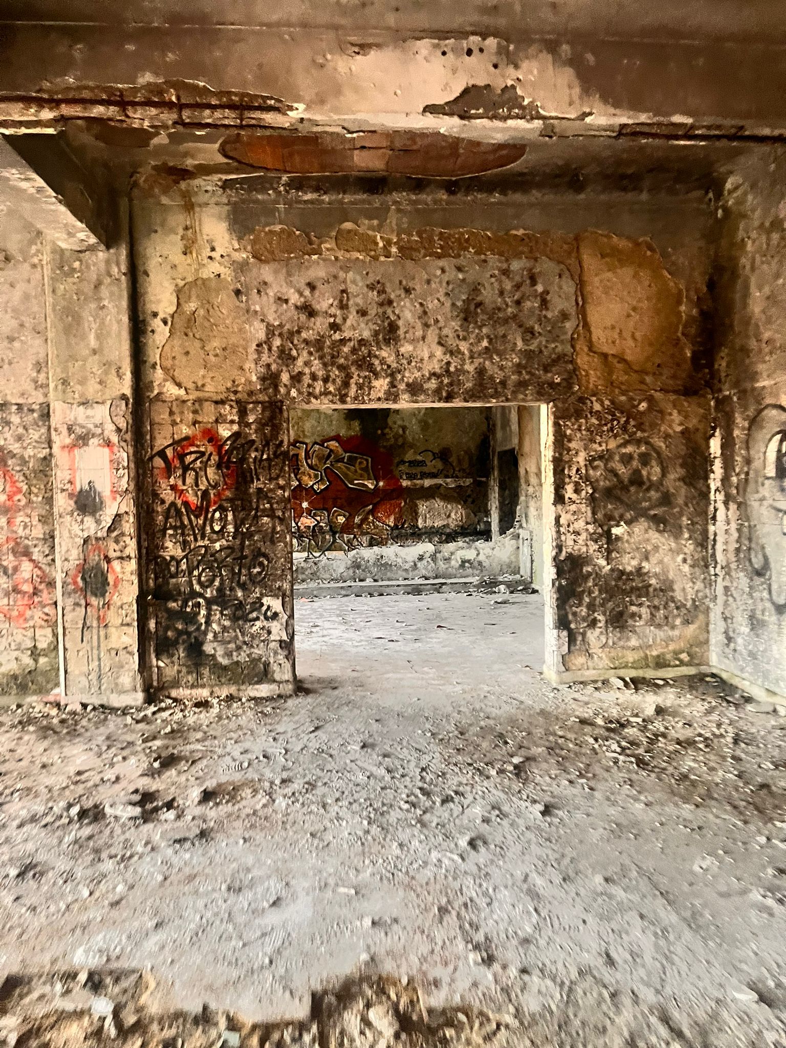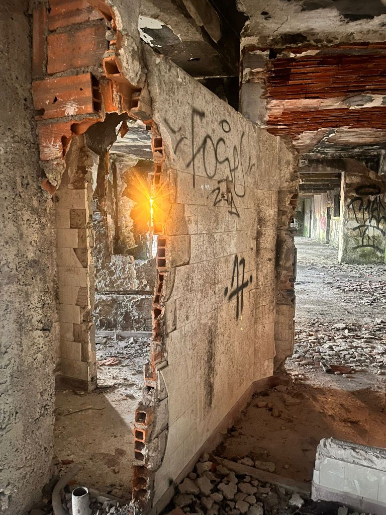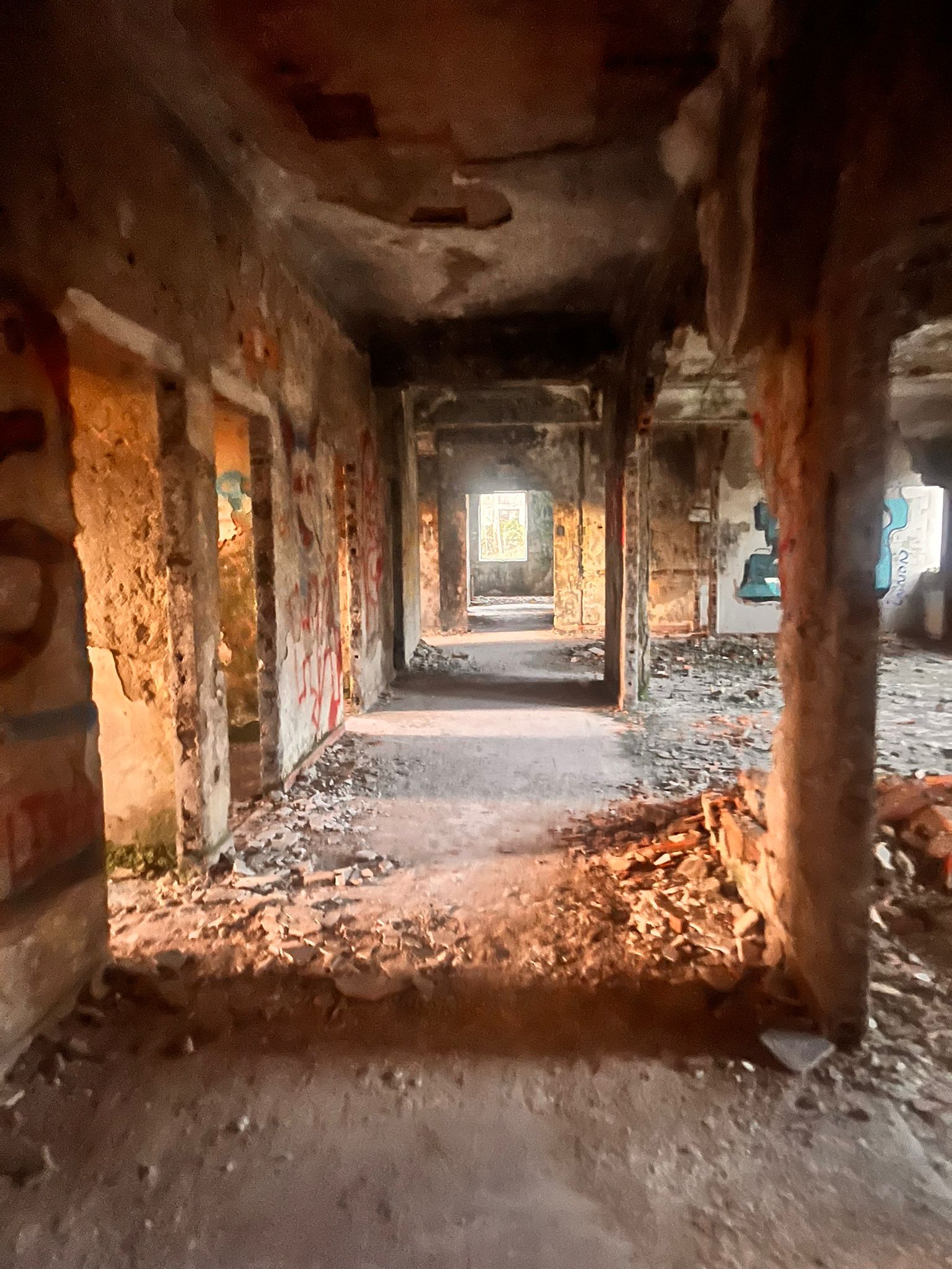 Hoje, o cinza do betão mistura-se com grafitis coloridos. A arte urbana ocupa paredes, corredores e antigas enfermarias, criando um contraste curioso entre decadência e criatividade. O edifício está muito degradado, é verdade, mas há algo de profundamente fotogénico em cada canto.