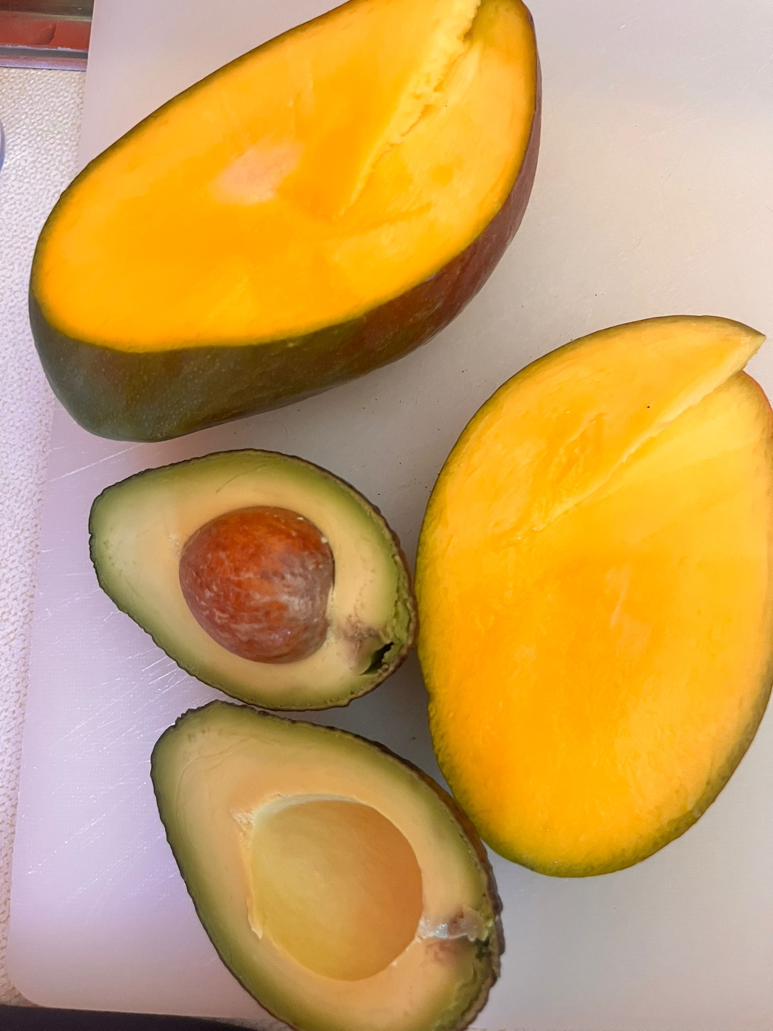 Entretanto, corte a manga e o abacate em cubos pequenos.