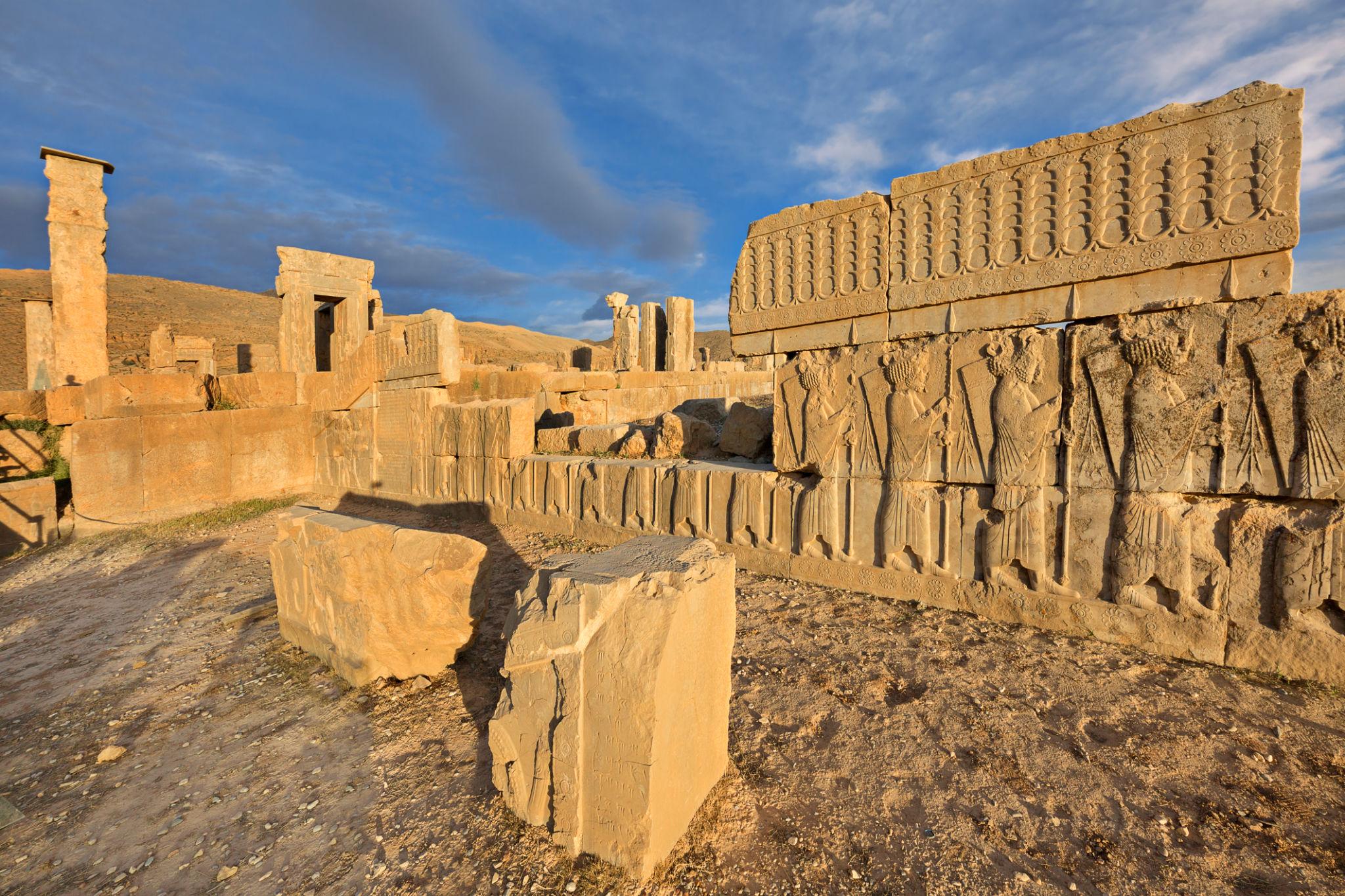 Também foi nesta fase que surgiu Persépolis, uma cidade construída para simbolizar o poder e a grandeza do império. As suas ruínas, ainda hoje visíveis, mostram relevos onde delegações de diferentes povos aparecem a trazer tributos ao rei. Não são imagens de submissão forçada, mas antes representações de um império onde coexistiam várias culturas.
